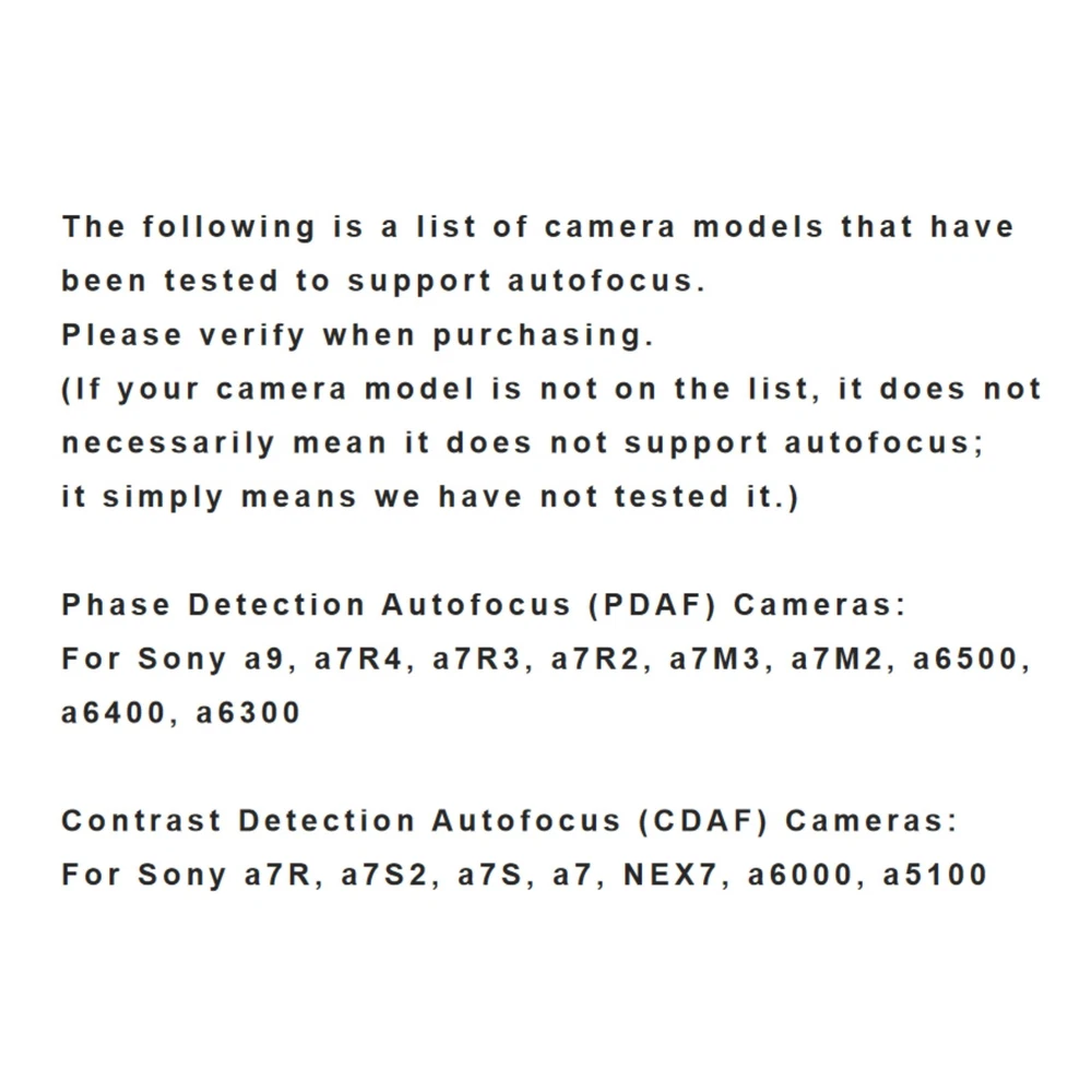 You may also like 8 IN 1 Metal Craft Chinese Ring Puzzle IQ Brain Teaser Kid Adult Educational Toy 10.99 USD 4Pack Durable Fuel Line Tube Hose For Husqvarna 61 66 162 181 266 268 272 281 9.99 USD Pneumatic Foot Pedal Valve FV-320 Momentary 3 Way 2 Position 1/4"PT Threaded 23.99 USD 5V 4-Pin Sunglasses USB Charger Charging Cable For Bose Frames Alto/Rondo/Tenor 11.99 USD 10x Hall Effect Joystick 3D Analog Stick Module For PS5 Dualsense Controller 17.59 USD 3.69 USD 10Pack Plastic+HSS 360° Deburring Tool Steel HSS Rotary Deburr Trimming Handle 10.69 USD Product Description Features: Cross-Compatibility for Enhanced Lens Options: It bridges the gap between for Canon's EF series lenses and for Sony's NEX E-mount cameras, allowing photographers to leverage their existing for Canon lens collection or explore a wider range of lenses from the EF lineup, unlocking new creative possibilities and enhancing the versatility of your for Sony NEX camera. Full-Frame Support for Sony A7/A7R Series: Designed with a full-frame aperture hole, it perfectly aligns with for Sony's full-frame mirrorless cameras, ensuring optimal performance, clarity, and image quality when using EF lenses on these high-end cameras. Gold-Plated Pins for Exceptional Conductivity: Featuring gold-plated pins for signal transmission, it provides superior electrical conductivity, minimizing signal loss and maximizing performance, especially during fast-paced or demanding shooting scenarios. Comprehensive Camera Function Support: It supports slow auto-focus, TTL metering, automatic exposure, and automatic aperture control, enabling seamless integration with your for Sony NEX camera and ensuring that you can capture stunning images with ease. Built-In Anti-Shake Function: Incorporating an anti-shake function, it helps to minimize blur and enhance image stability, even in low-light or handheld shooting conditions, making it particularly useful for capturing sharp, clear images. Quick Lens Release Mechanism: Equipped with a lens release lever, it allows for quick and easy lens attachment and detachment, saving time and ensuring a secure and hassle-free lens changing experience. Tripod Mount for Added Stability: Including a 1/4-inch screw mount, it can be securely attached to a tripod or other camera support systems, providing additional stability and allowing you to shoot with confidence, even in challenging environments or with heavy lenses. Innovative autofocus technology: With its revolutionary design, the EF-NEXII adapter is the first to achieve autofocus between the E mount and the EF mount, completely breaking the boundaries between brand and system. Specifications: Model: EF-NEXII Color: Black Material: Aluminium alloy Compatible lens: For Canon EF series lens Compatible cameras: For Sony NEX E Mount Camera (Including for Sony NEX full-frame camera A7/A7R) Front mount: For Canon EF mount Lens Rear mount: For Sony NEX E mount Camera Tripod screw: 1/4 screw Size: 8*6.5*3cm / 3.1*2.6*1.2in Package Included: 1 * Lens Mount Adapter Shipping Returns Contact Us Payment 1. Items sent from US warehouse. 2. Receiving time = Processing time + Shipping time. 3. Processing Time: Around 1-2 business Days. 4. Shipping Time: 3-5 business day. It may have a little delay during some holiday (such as Christmas), any problem, please feel free to contact. Always believe we can figure things out with communication, if it comes to return, the pacakge must be intact and the same as you receive. If you have any questions, please feel free to email our service specialists 24 Hours a Day, 7 Days a Week. We will reply you ASAP. Return/refund is accepted within 30 days after the buyer receives the item. NO exchange will be accepted after 30 days from the date when the item is received. Please contact us first before returning your product!!! If you have any questions, our Customer Service staffs welcome you to email us. We strive to answer all questions and resolve any problems as quickly as possible. We care about our valued customers, and will always try to help you. So if you have any problems, You can contact us 7*24, we will reply at the first time. We accept all verified payments from ebay. Orders will be shipped after receiving cleared payment. Shipping 1. Items sent from US warehouse. 2. Receiving time = Processing time + Shipping time. 3. Processing Time: Around 1-2 business Days. 4. Shipping Time: 3-5 business day. It may have a little delay during some holiday (such as Christmas), any problem, please feel free to contact. Returns Always believe we can figure things out with communication, if it comes to return, the pacakge must be intact and the same as you receive. If you have any questions, please feel free to email our service specialists 24 Hours a Day, 7 Days a Week. We will reply you ASAP. Return/refund is accepted within 30 days after the buyer receives the item. NO exchange will be accepted after 30 days from the date when the item is received. Please contact us first before returning your product!!! Contact Us If you have any questions, our Customer Service staffs welcome you to email us. We strive to answer all questions and resolve any problems as quickly as possible. We care about our valued customers, and will always try to help you. So if you have any problems, You can contact us 7*24, we will reply at the first time. Payment We accept all verified payments from ebay. Orders will be shipped after receiving cleared payment. 1/72 Scale Diecast Alloy US Army Black Hawk MH-60L Helicopter Military Model 139.99 USD 3.69 USD 1/400 Polish Gdansk Cargo Ship Model Unassembled Paper Model Collection Gift 7.99 USD 8.69 USD 1* Handheld Digital Microscope 2 MP Portable Microscope Camera 500X 24.99 USD 8.69 USD 1/400 16cm Alloy B767 Mongolian Airlines Airplane Model Display Christmas Gifts 10.99 USD 8.69 USD 1:400 16cm Air New Zealand B747 Plane Model Aircraft Diecast Metal Ornaments f 10.99 USD 3.69 USD 1/72 Soviet Army T-55 Tank Finished Static M