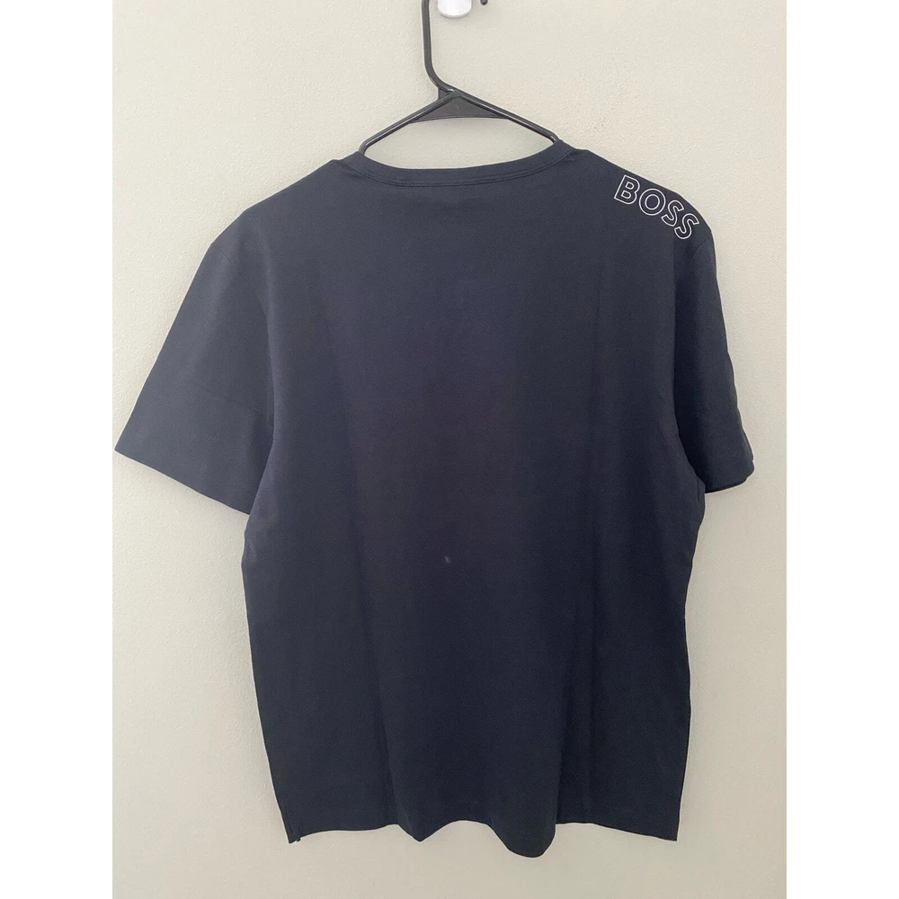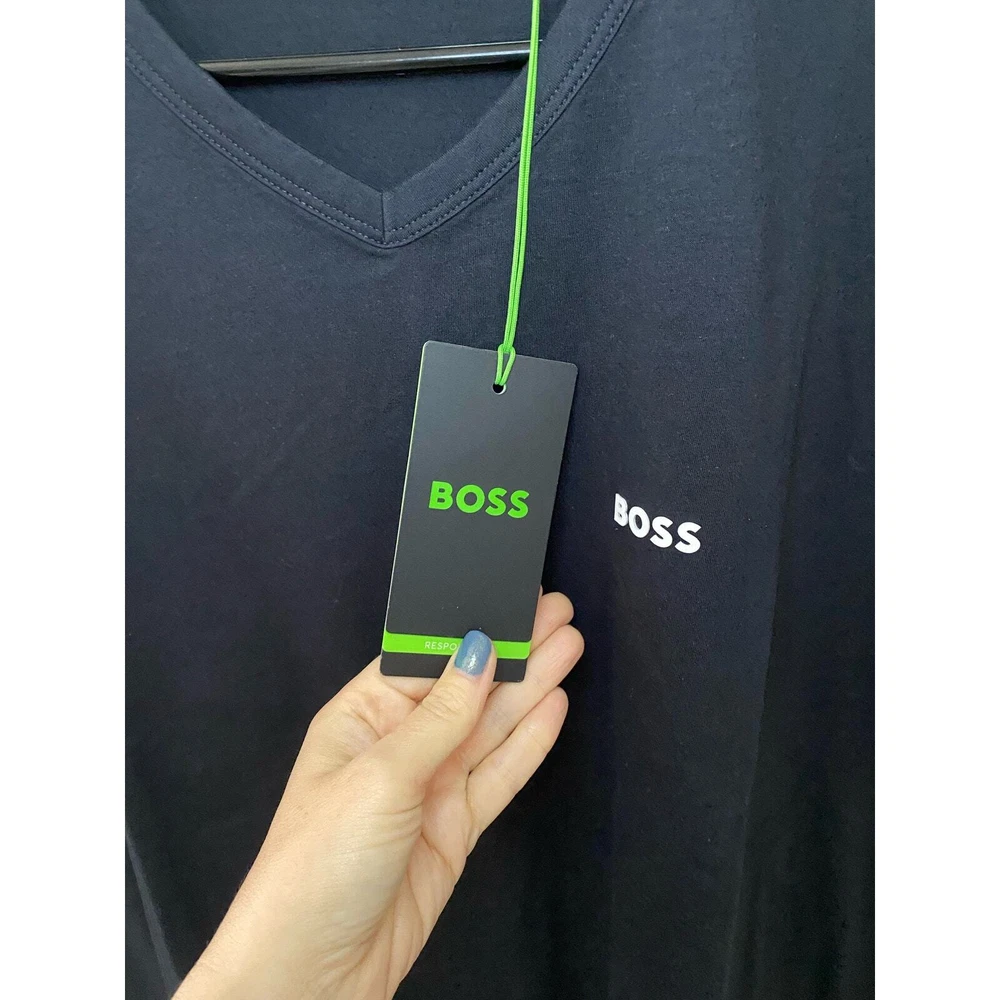 New BOSS Men's Logo Dark Navy V Neck T-Shirt Color: dark Navy, this is almost black but a beautiful Navy color Size Medium