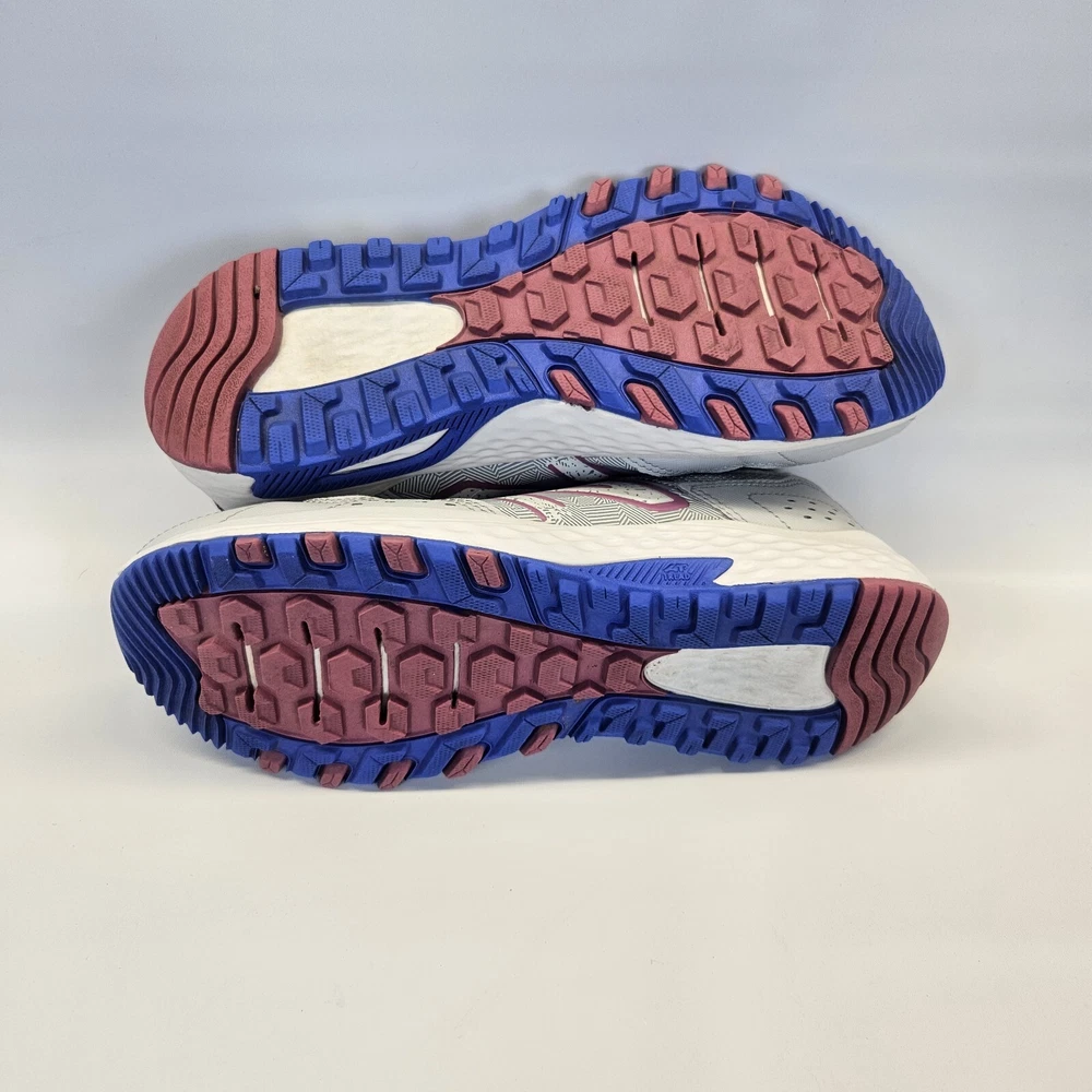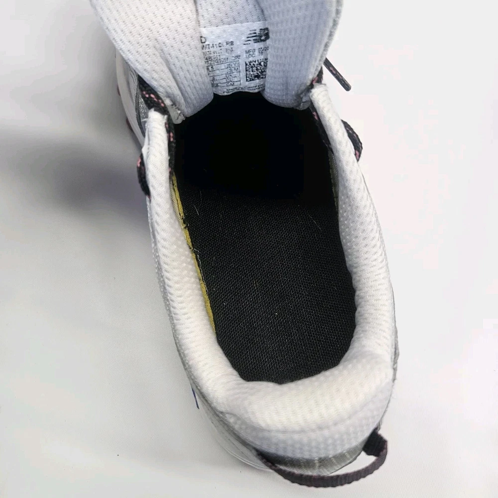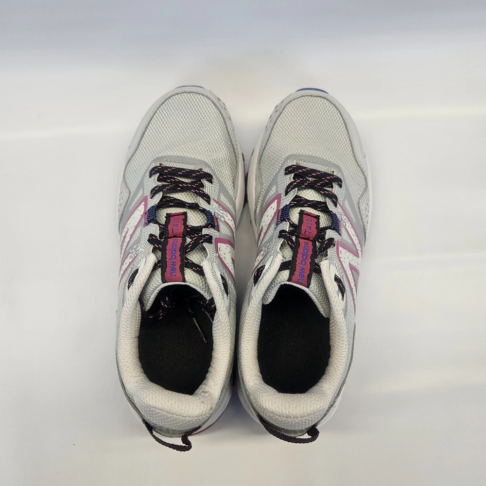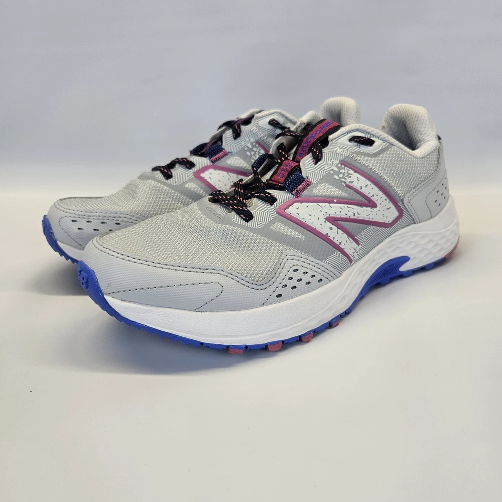 New Balance 410 V8 Trail Running Shoes WT410LR8 Womens 8.5 D Light Gray/Fuchsia Good preowned condition with normal signs of use. Run further and faster with the New Balance WT410. This sporty athletic features a lace-up front with a Comfort Insert to keep your feet comfortable on those morning jogs. Cushioned yet lightweight outsole provides a smooth ride. breathable mesh upper lace-up front with a pull-tab on the heel Cushioned Insert for a comfortable ride lightweight and comfortable midsole rubber traction outsole