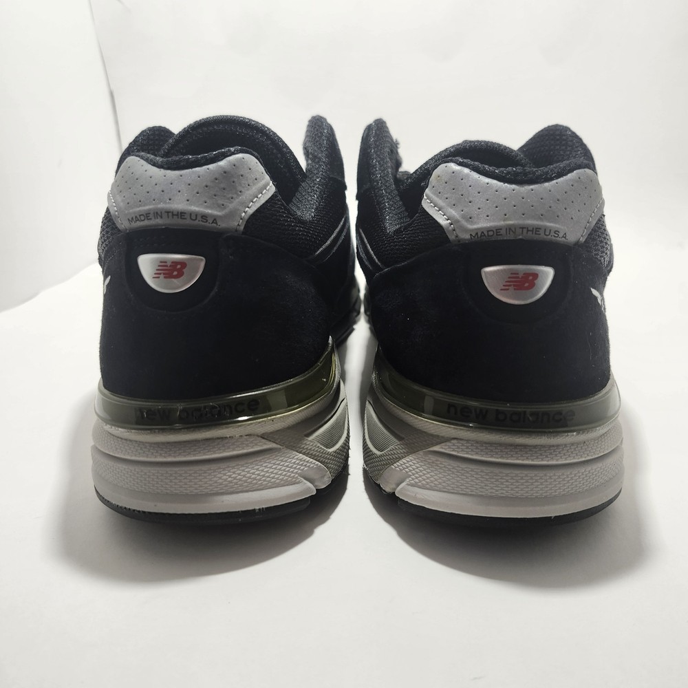 Release Year: 2016 Features: Comfort Outsole Material: Rubber Insole Material: Foam Year Manufactured: 2016 Closure: Lace Up Type: Athletic Color: Black Style: Sneaker Brand: New Balance Country of Origin: United States Theme: USA Performance/Activity: Boxing, Running & Jogging Model: New Balance 990V4 Shoe Shaft Style: Low Top Season: Spring, Summer, Fall Department: Men Style Code: M990BK4 Shoe Width: D UPC: 889516363867 Product Line: New Balance 990 Occasion: Casual Customized: No Upper Material: Suede US Shoe Size: 12 EU Shoe Size: 46.5 gtin13: 889516363867 UK Shoe Size: 11.5