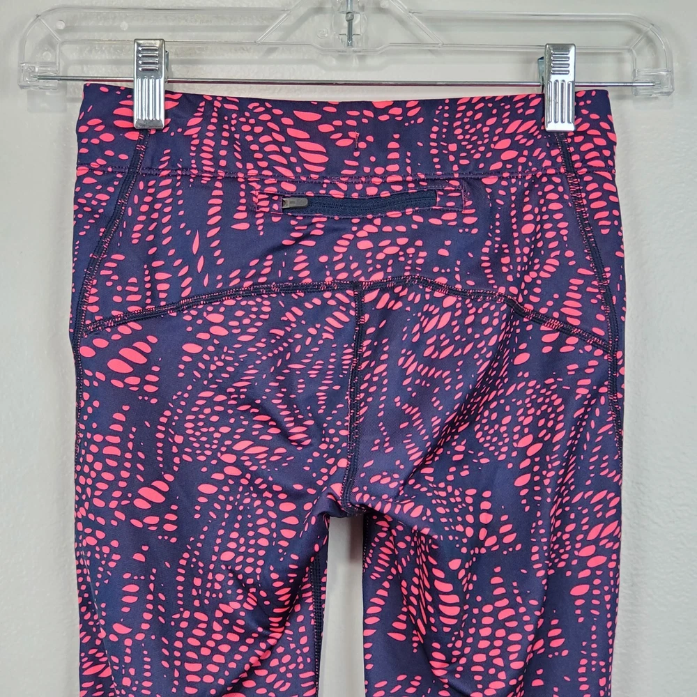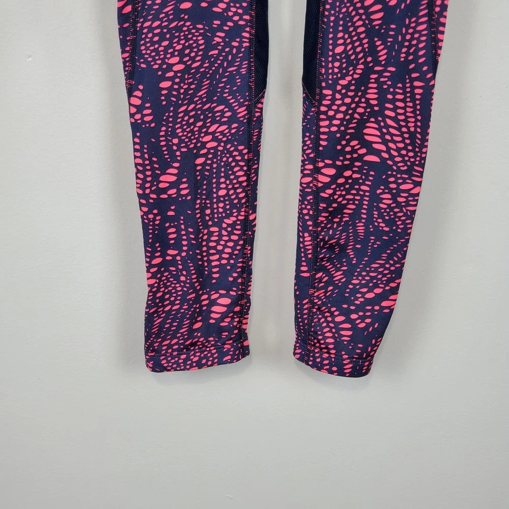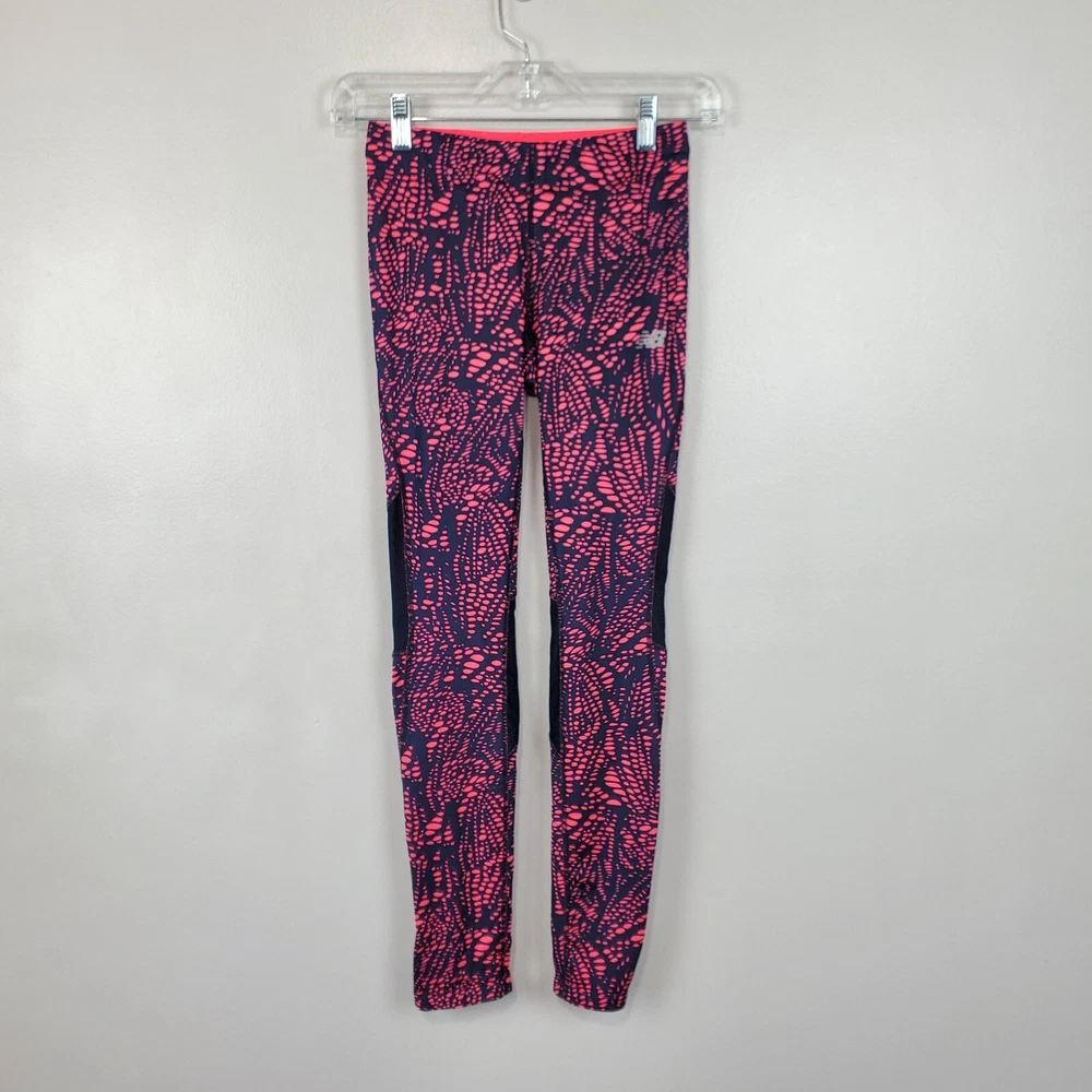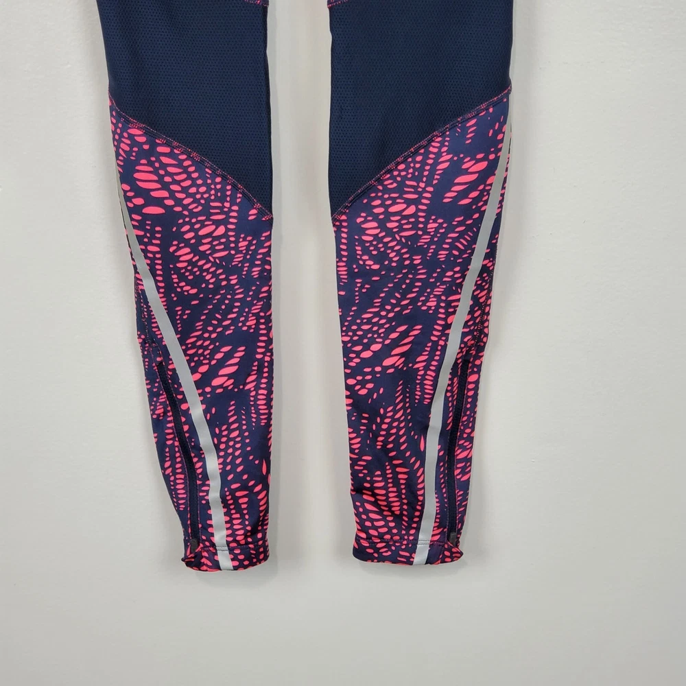 New Balance Activewear Athletic Reflective Running Strips Legging Size Extra Small Navy, pink with back leg reflective strips Wide flat elastic waistband with inside drawstring Ankle zipper Back zipper pocket Perforated leg panels Running Activewear Athletic wear Fitness wear Exercise wear Notice: Color may differ from your computer, phone or device display Relaxed flat lay measurements are approximate, fit not guaranteed. Waist front side to side: 11 1/2" Inseam: 27" Y1402B M60723 9106 **5.7oz** 90424