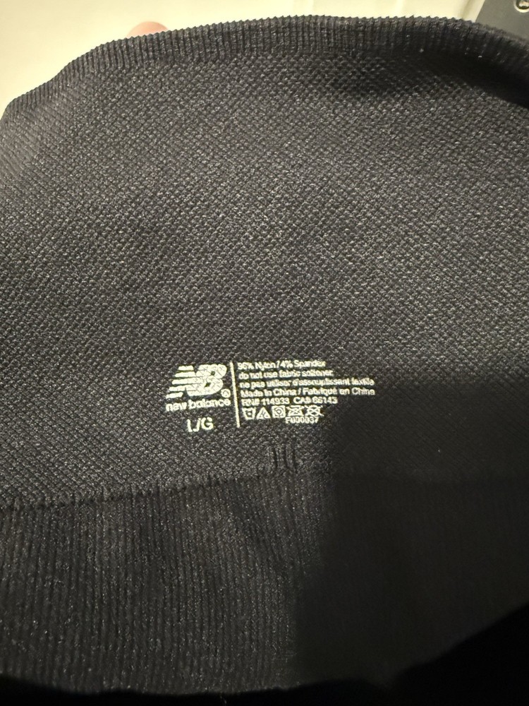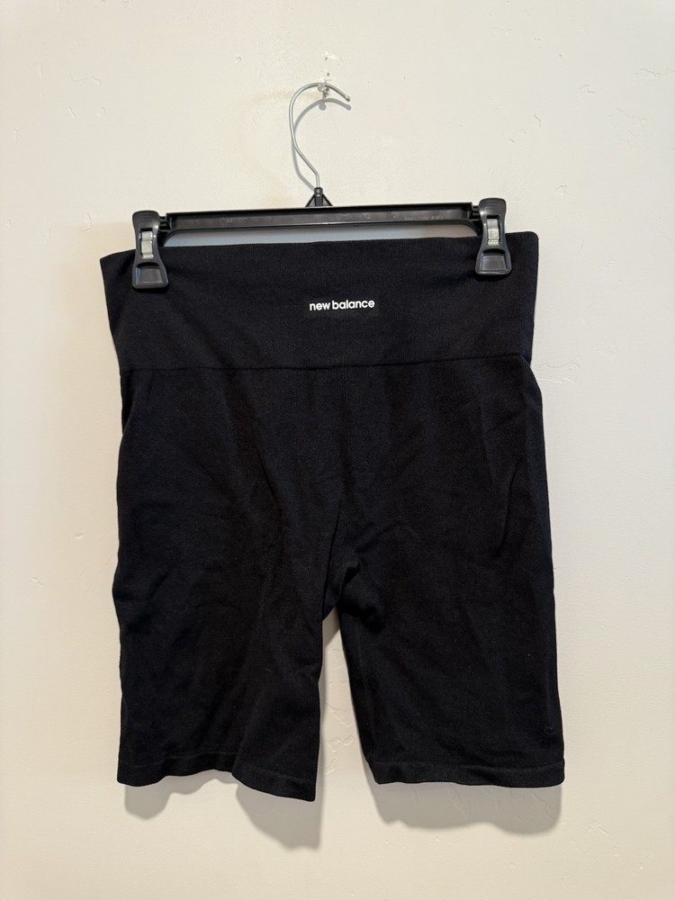 These New Balance Black Bike Shorts in size Large are perfect for active women who love the biker style. Made from a stretchy micro ribbed texture material of nylon and spandex, these shorts offer comfort and support. With a solid black color and a sleek design, they are ideal for gym training, running, or crossfit. The elastic waist and compression area around the buttocks and waist ensure a secure fit for your workout. Machine washable and easy to care for, these shorts are a versatile and stylish addition to your activewear collection.41