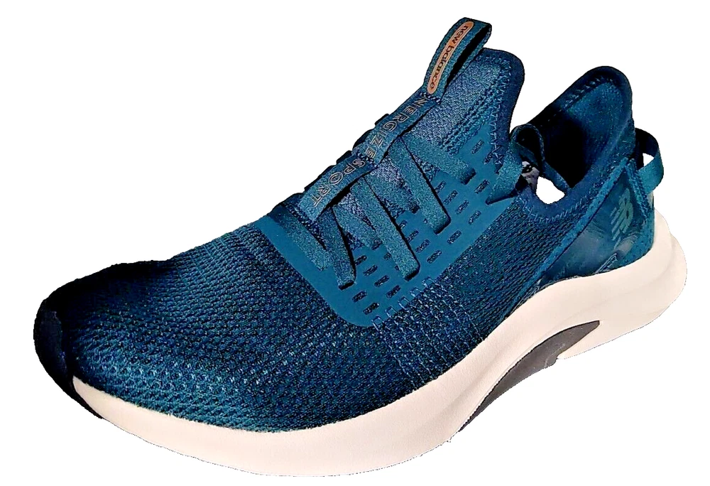 New Balance DynaSoft Nergize Sport V2-Size 9.5W-Holiday Deep Teal Metallic/White Style #: WNRGSV2-44540 Synthetic/textile upper DynaSoft midsole couples ultra-responsive performance with plush comfort Upper features no-sew construction for a sleek fit and feel Adjustable lace closure for a customized fit Durable rubber outsole 6 mm drop; due to variances created during the development and manufacturing processes, all references to 6 mm drop are approximate Holiday pack features jewel-tone colors with metallic detailing