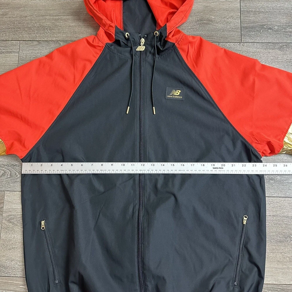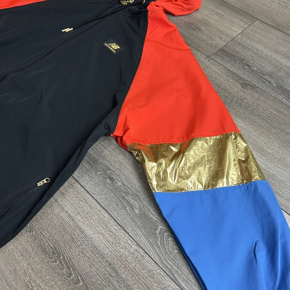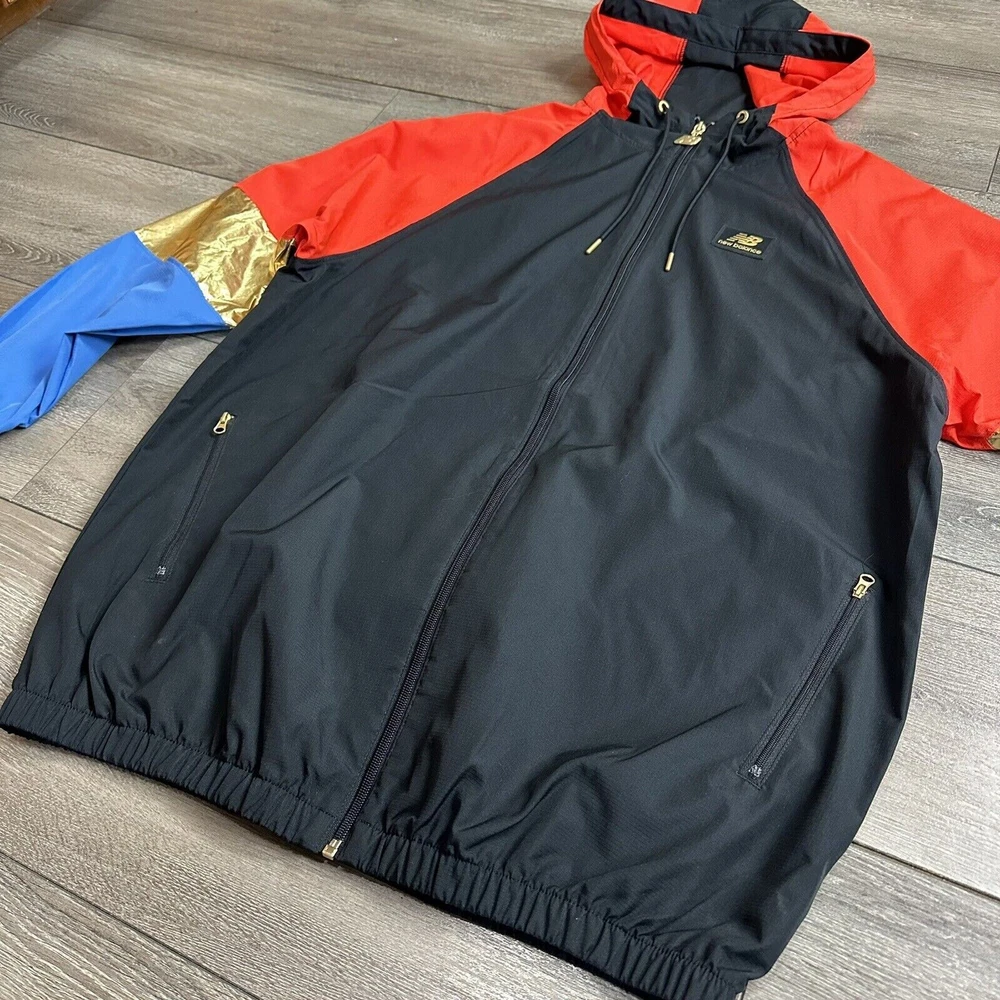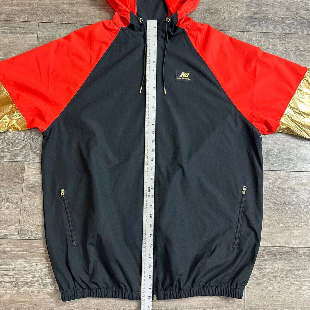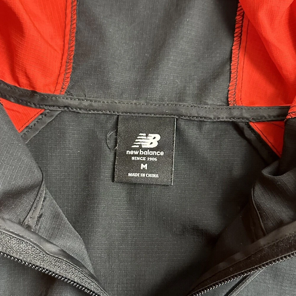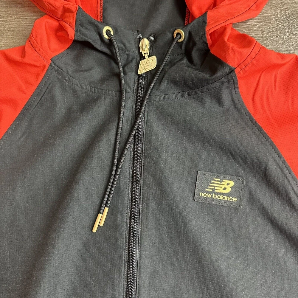 New Balance Jacket Size M Windbreaker Black Magnet Red Gold