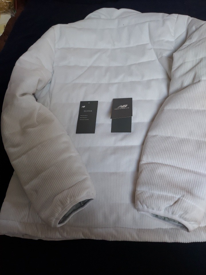 The New Balance Women's White Puffer Jacket is a stylish and practical outerwear option for the winter season. Made from durable polyester with a full zip closure, this varsity style jacket features a lined interior for added warmth. Perfect for various activewear occasions, this jacket can be machine washed and is designed for comfort and functionality. The New Balance brand ensures quality and performance, making it a versatile choice for activities such as tennis, golf, skiing, and more. New jacket with tags.