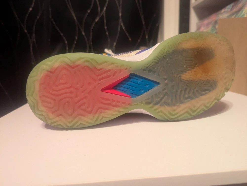 Step up your game with the New Balance Kawhi Leonard Jolly Rancher White Basketball Sneakers. Designed for both style and performance, these sneakers feature a colorblock design in a crisp white palette, complemented by the iconic Jolly Rancher branding. The breathable and cushioned construction ensures comfort throughout the day, making them suitable for a range of activities from activewear to casual workdays. Crafted with the New Balance 997H Cordura silhouette, these athletic shoes offer durability and a sleek look. Available in US size 10 (UK 9.5, EU 44), they come with a standard D shoe width and are manufactured in Vietnam. The sneakers are perfect for those who appreciate sports-themed footwear with a contemporary edge, without compromising on comfort and quality.