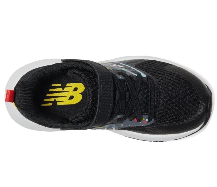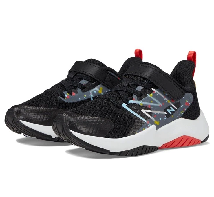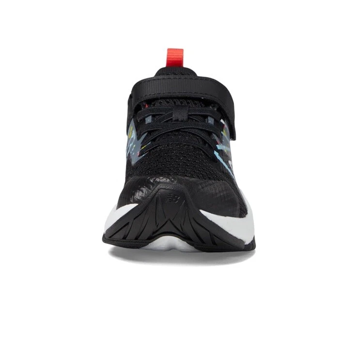 Elevate your child's shoe game with these New Balance Kids Rave Run v2 Bungee Lace sneakers. The pull-on design with a top strap closure ensures a secure fit, while the wide and large shoe width provides comfort and support. The black and blast red color combination with a space pattern adds a stylish touch to any outfit, making it perfect for travel, activewear, parties, weddings, casual wear, formal events, and business affairs. The shoe features lace fabric type with strap accents and is suitable for both little and big kids. The product line is the New Balance Rave Run V2 Bungee Lace with Top Strap. These lifestyle sneakers are perfect for any season, be it winter, summer, fall, or spring. Upgrade your child's shoe collection with these athletic and versatile sneakers from New Balance Kids.