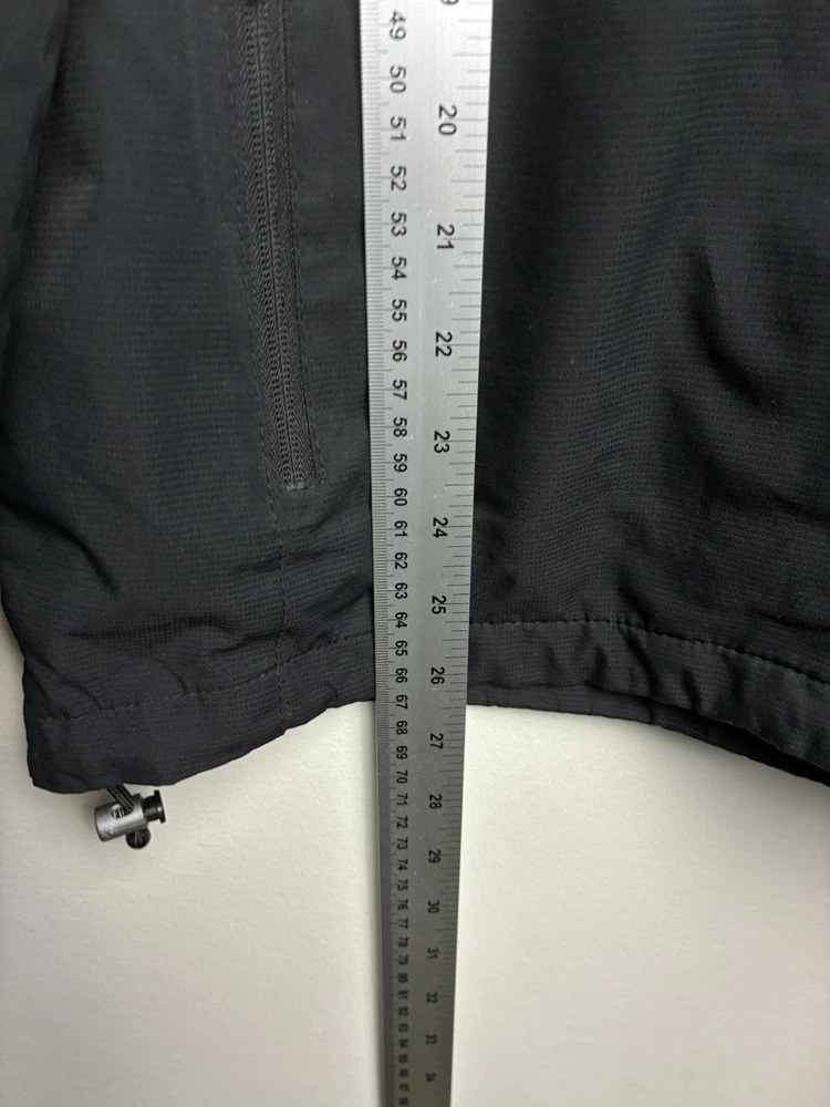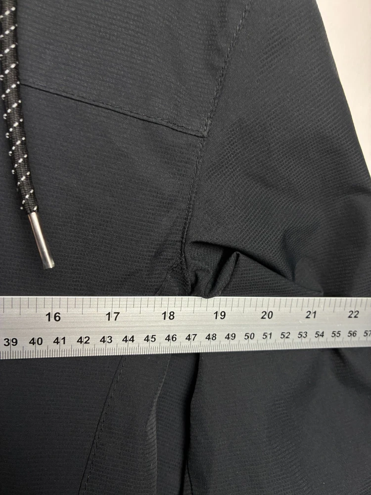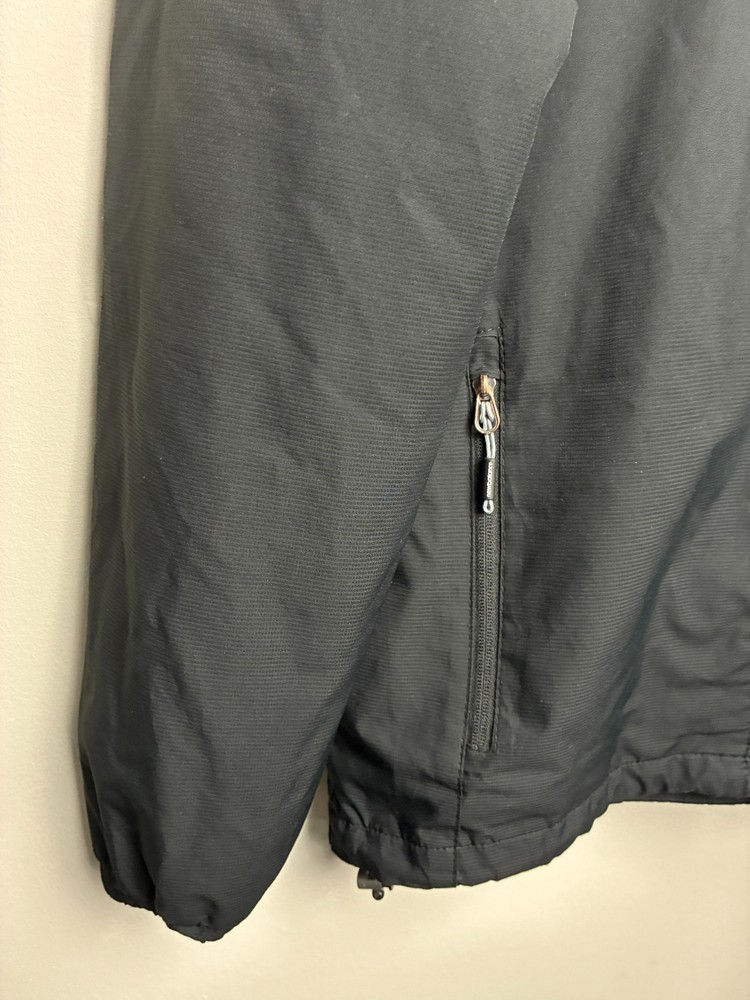 Men’s New Balance lightweight hooded jacket – Size S . Classic black shell with grey mesh lining , full zip front, and logo zip chest pocket. Adjustable hem drawcord, elastic cuffs, and branded zip pulls. Great for running, training, or casual wear. Lightly used with minimal signs of wear. See photos for condition and measurements.