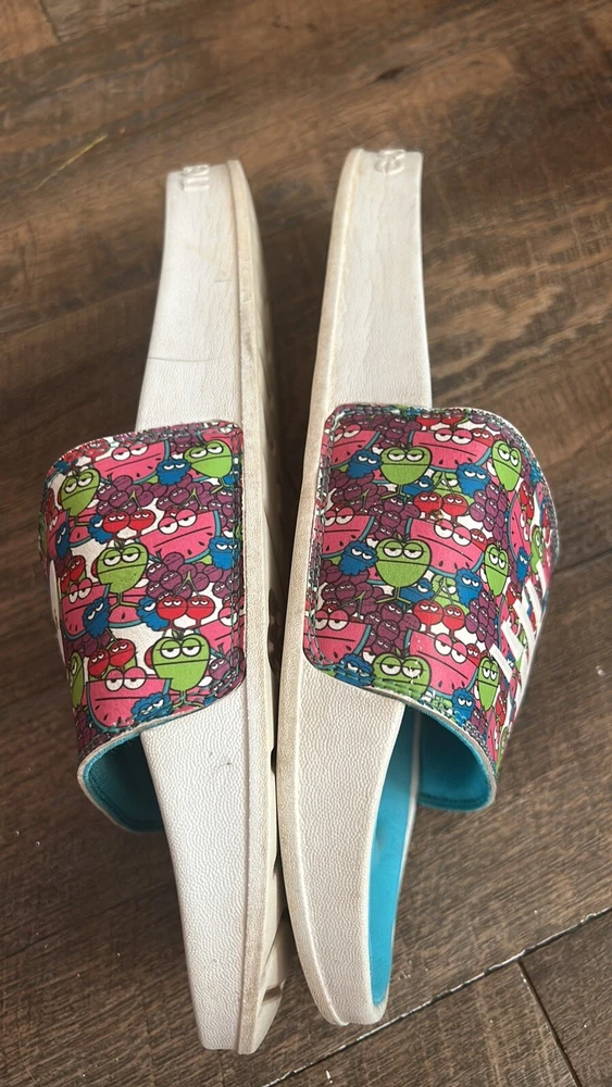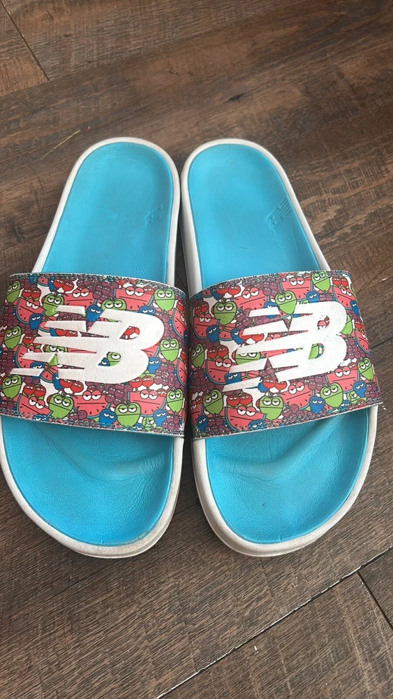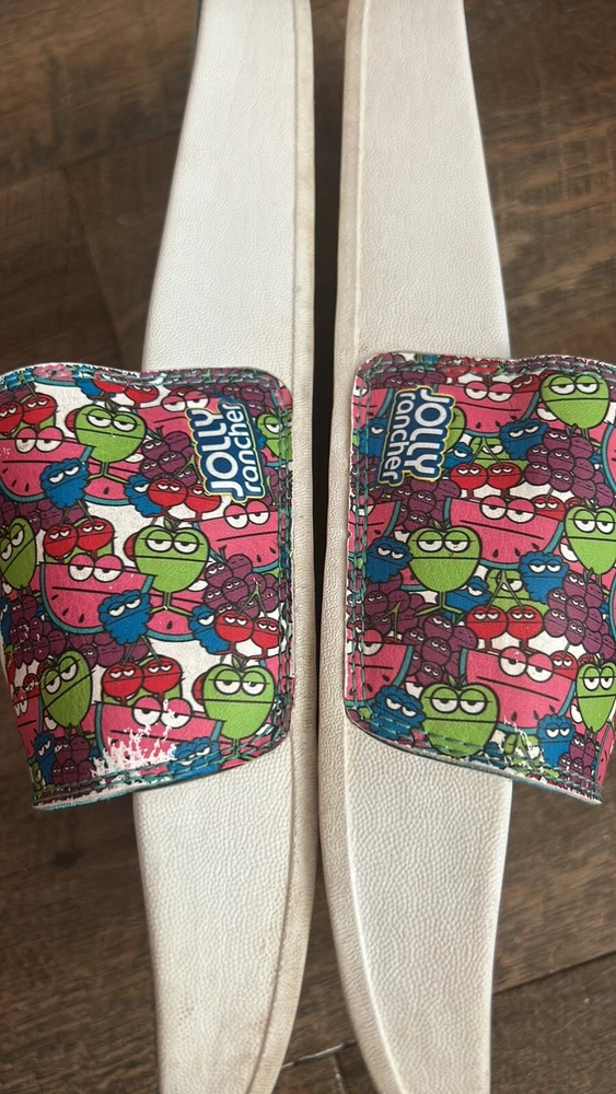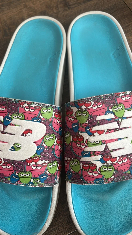 New Balance x Jolly Rancher Slides - Size 11 See pictures showing some wear on side of sandals the graphic