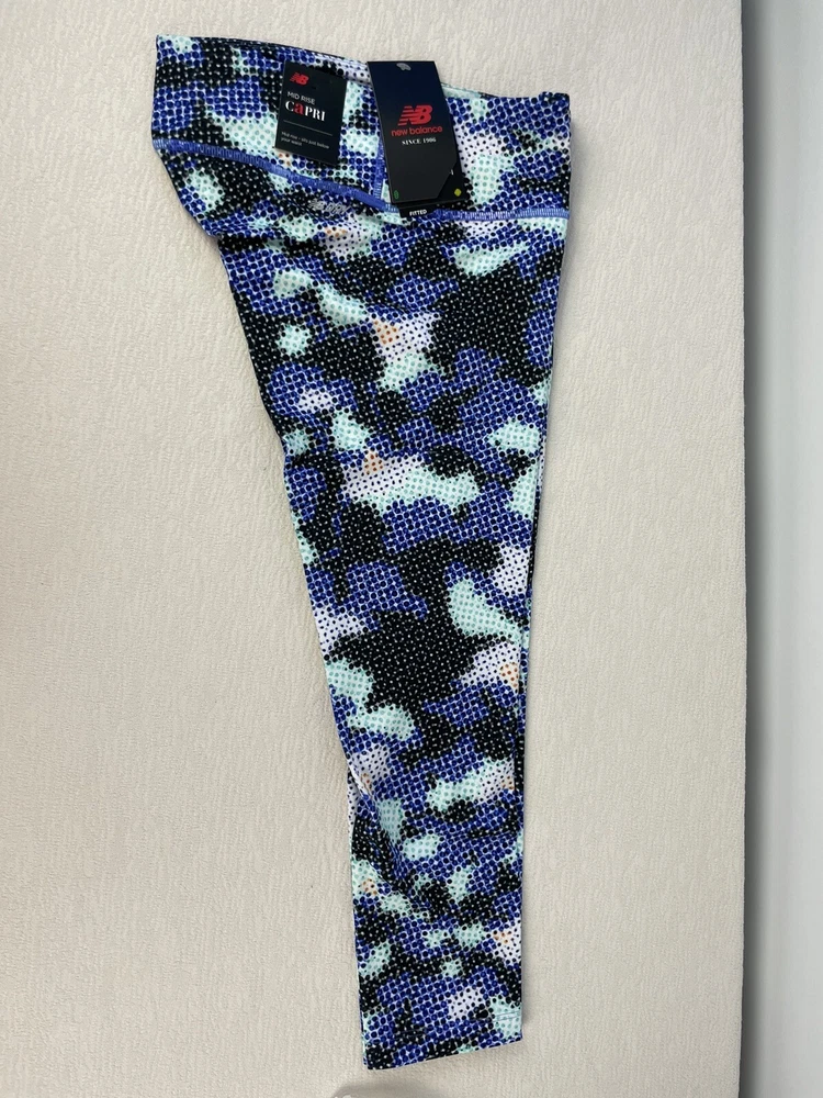New Balance Mid Rise Capri Fitted NB Dry Blue Printed Legging Size Large SKU F/30