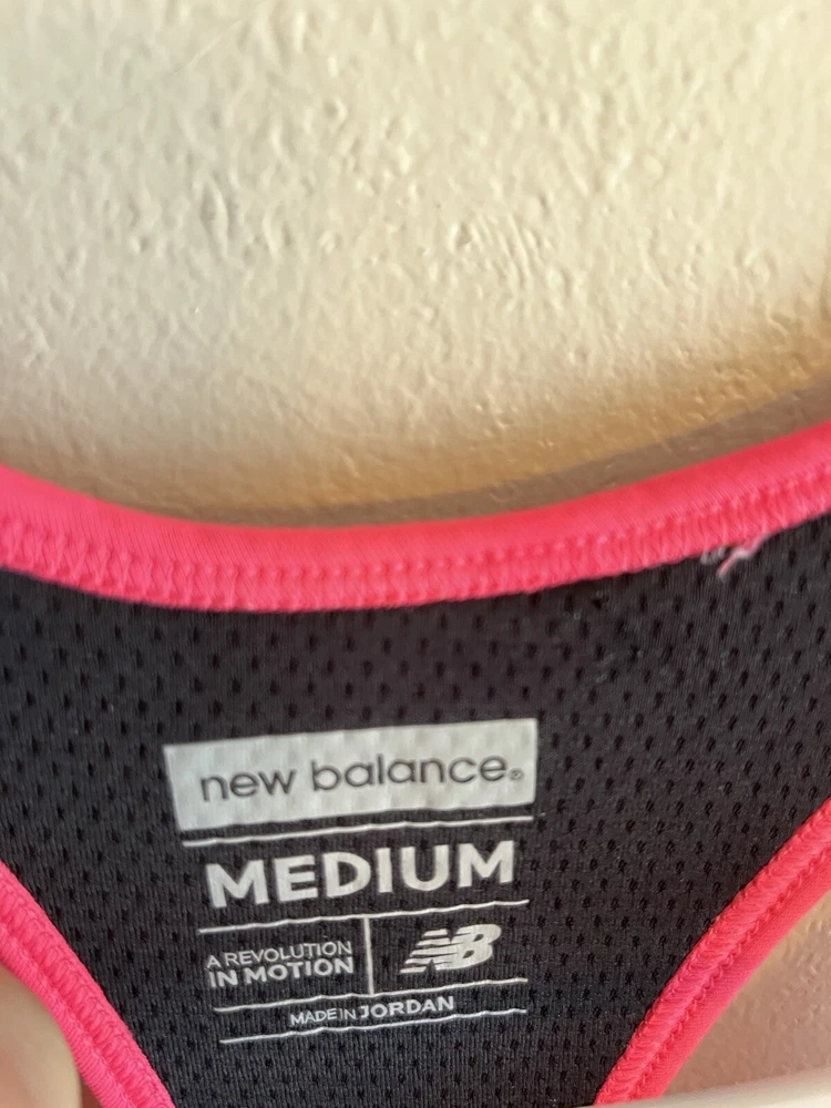 Country/Region of Manufacture: Jordan Size: M Type: Tank Sleeve Length: Sleeveless Personalize: No Occasion: Activewear Fabric Wash: Medium Strap Type: Racerback Theme: Neon Features: Breathable, Lightweight, Stretch Garment Care: Machine Washable Neckline: Round Neck Season: Spring, Summer Department: Women Compression Area: Back, Body, Chest Vintage: No Handmade: No Color: Pink Style: Pullover Size Type: Regular Material: Polyester, Spandex, Cotton Fabric Type: Blended Fabric Fit: Athletic Brand: New Balance Pattern: Solid Performance/Activity: Running & Jogging, Cross Training, Gym & Training, Bodybuilding, CrossFit, Hiking, Lacrosse, Soccer, Track & Field, Walking, Weightlifting, Yoga Closure: Pullover