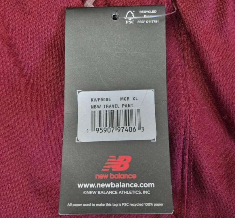 Brand: New Balance UPC: 195907974063 Closure: Drawstring Material: Cotton, Polyester Fit: Regular Personalize: No Department: Women SK:: 10M02225 Garment Care: Machine Washable Occasion: Activewear, Travel Compression Area: Waist Theme: Sports Features: Drawstring, Elastic Waist, Gripper tape waistband, Leg zippers at cuffs, Moisture Wicking, Quick Dry, Side seam pockets Color: Burgundy Size: XL Type: Pants MPN: KWP9006 Product Line: NB TRavel Pant Fabric Type: Knit Pattern: Solid gtin13: 195907974063 Size Type: Regular Leg Style: Tapered Style: Sweatpants Personalization Instructions: It is recommended to wash before wearing to eliminate sewing marks or traces. Follow the washing and garment care instructions for proper maintenance.