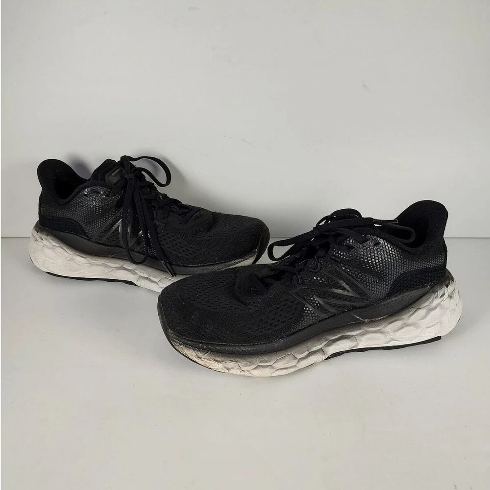 New Balance More V3 - womens Black Running Shoes Size 10 in good condition the tread is a little worn no holes or stains, has a patch connecting a loop for the laces has been washed thoroughly before listing please refer to pics before purchasing