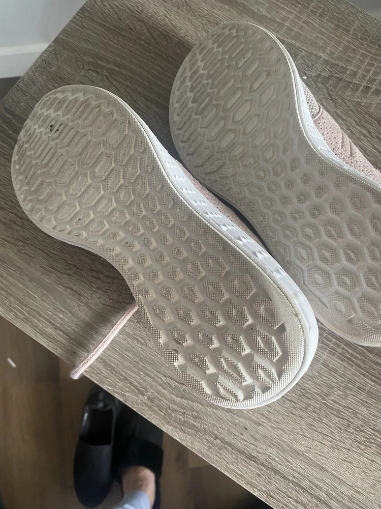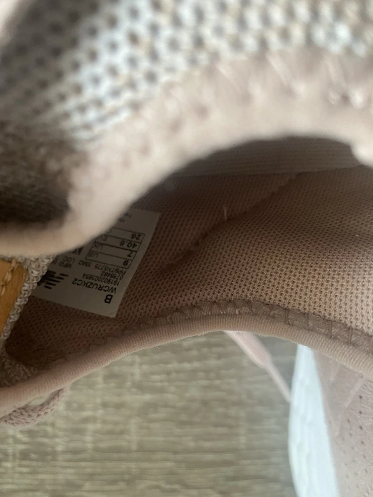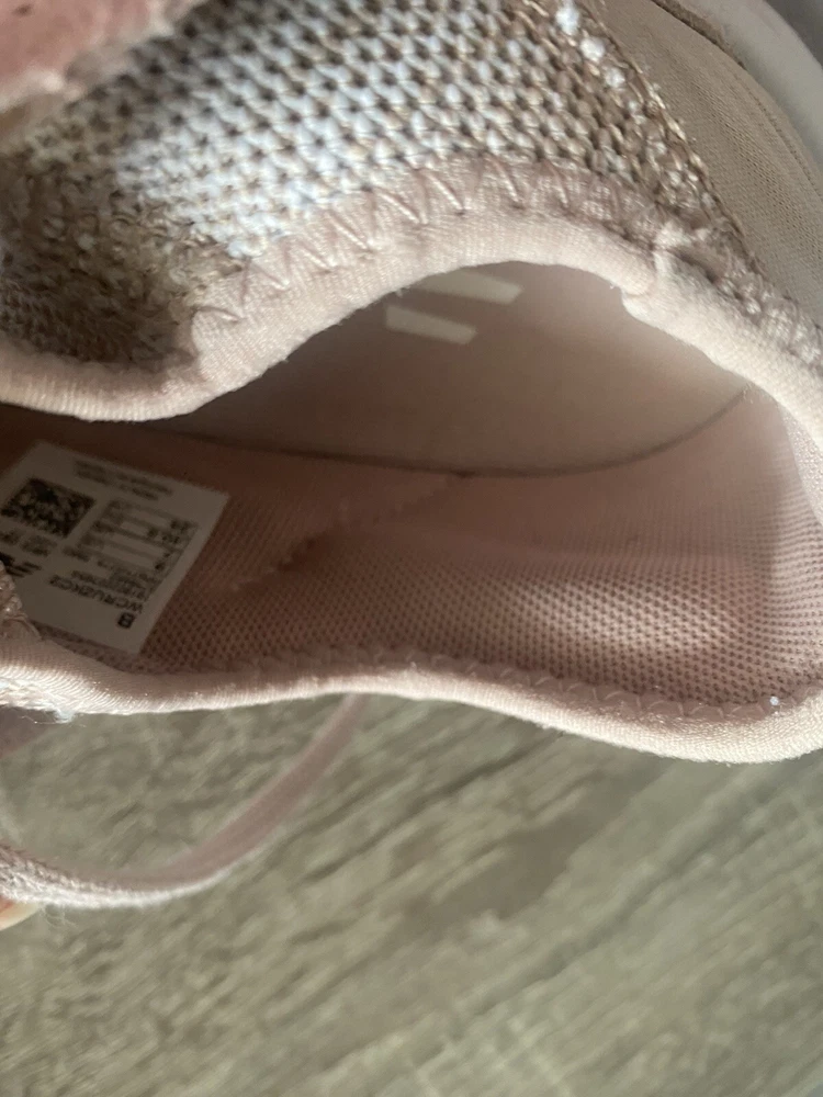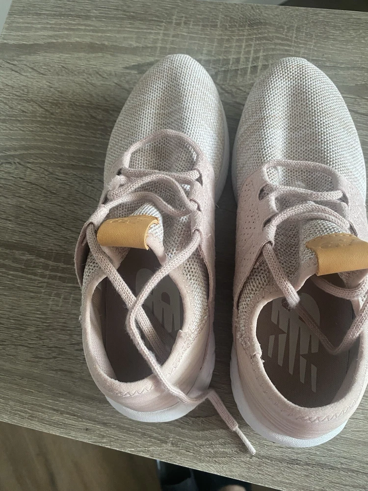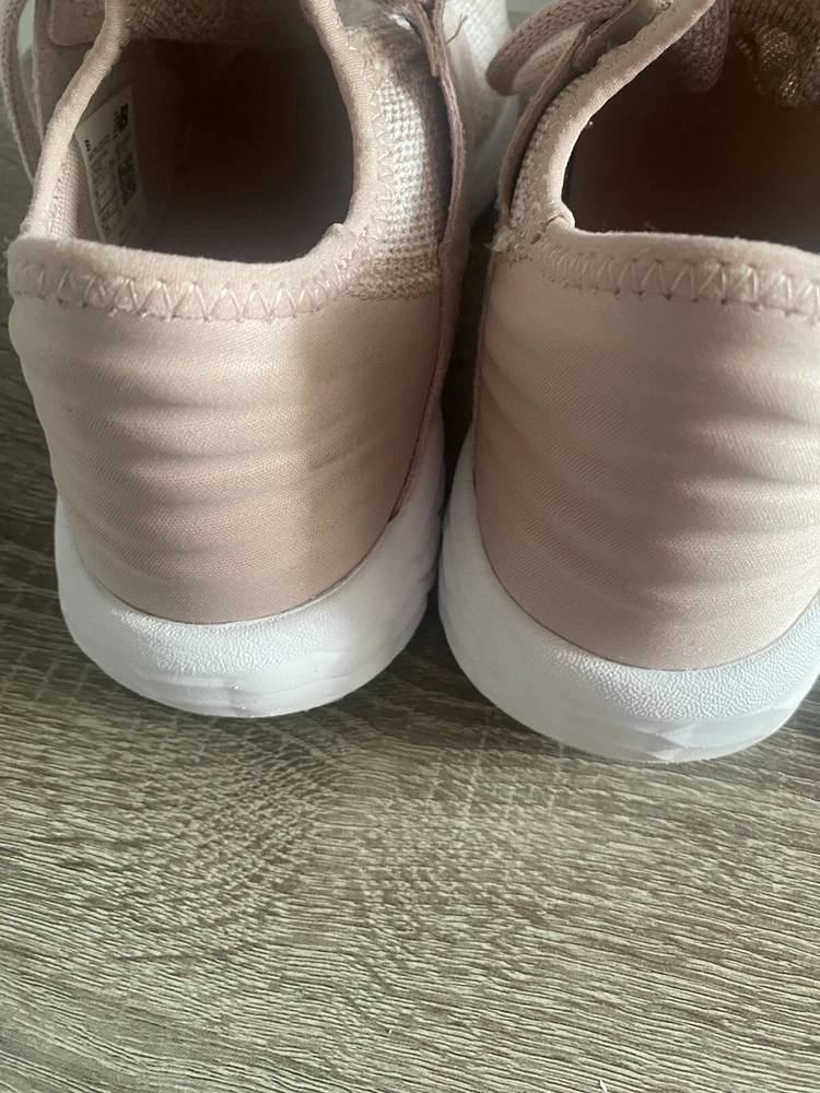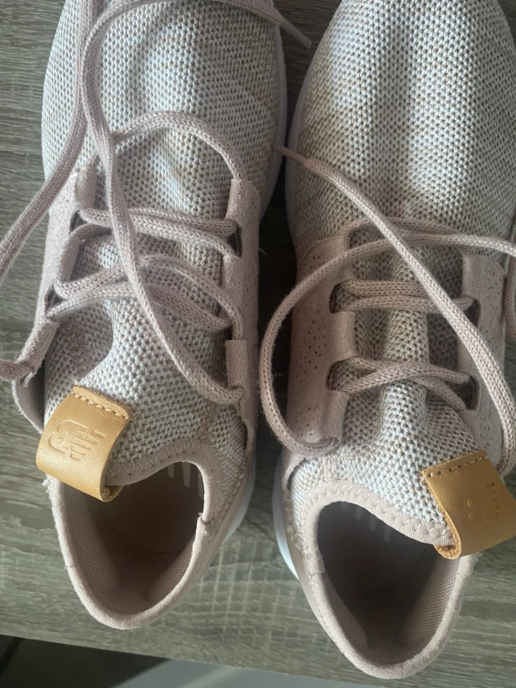 New Balance color is like a muave pink smoke and pet free home no rips or tears