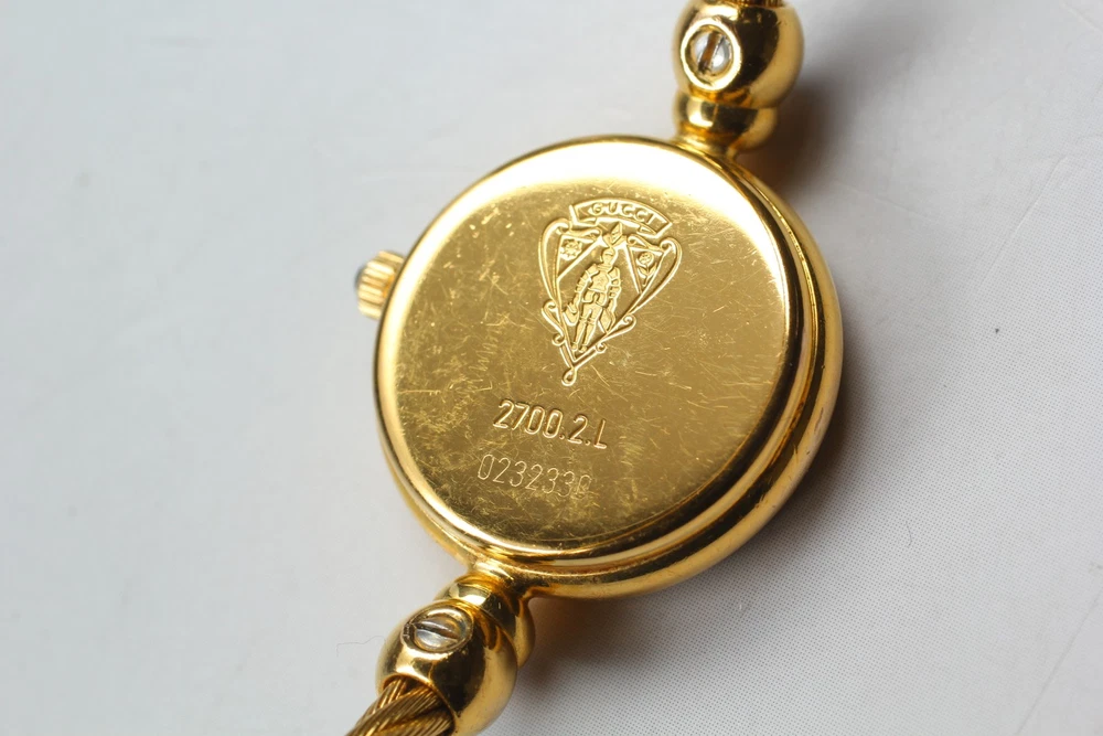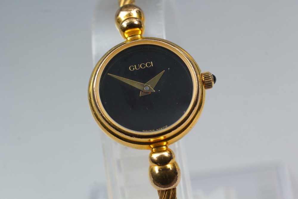 New Batt [N MINT] Vintage GUCCI 2700.2.L 20mm Black Dial Gold Qz Women's Watch #55550324 Description Total Condition; Near MINT Appearance; Appearance is beautiful. tiny scuffs from normal use. It shows signs of use. *Please check photos. Functional; It works properly. The watch is currently running smoothly, but since it is a battery-powered watch, there is a possibility that it will stop during transportation. Please understand that we do not guarantee that this will happen. Please contact me first for return before you ship it back to me. Bundled Items; All you can see on the picture will be included in a set of a package. Above condition is based on my own opinion. Please check the photo carefully. Please feel free to contact me for any questions! Thank you. Shipping I send a product by DHL,eBay SpeedPAK Express . I attach the tracking number. Please bid it without worrying. Shipping is available from Monday to Friday. Weekends are not available because office is closed. Returns Unconditional Return Policy Customer service and satisfaction are very important to us. I have an unconditional return policy if notified within 30 days of the receipt of the item. All returned items must be the original condition. All return requests must be made within 30 days of the receipt of the item. Please contact me first for return before you ship it back to me. The postage of the returned goods is a buyer burden. International Buyers Please Note: Import duties, taxes, and charges are not included in the item price or shipping cost. These charges are the buyer's responsibility. Please check with your country's customs office to determine what these additional costs will be prior to bidding or buying.