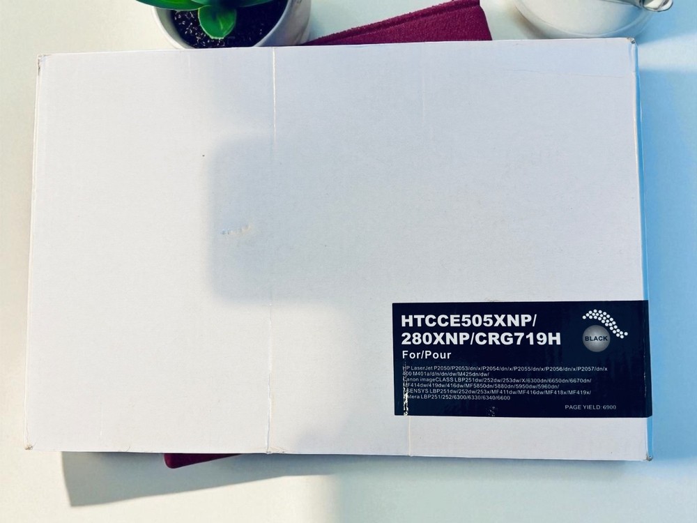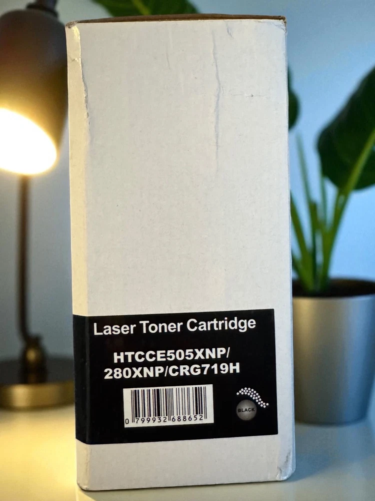 New Black Toner Cartridge HTCCE505XNP / 280XNP / CRG719H (For HP & Canon Printers) Description: Brand new and unused high-yield black toner cartridge. Compatible with a wide range of HP LaserJet and Canon imageCLASS / i-SENSYS / Satera printers. Model: HTCCE505XNP / 280XNP / CRG719H Colour: Black Page Yield: Up to 6900 pages ✅ Compatible with: HP LaserJet P2050 / P2053 / P2054 / P2055 / P2056 / P2057 series HP LaserJet Pro 400 M401a / d / n / dn / dw / M425dn / dw Canon imageCLASS LBP251dw / 252dw / 253dw / 6300dn / 6650dn / 6670dn / MF414dw / MF416dw / MF418x / MF419x / MF5850dn / MF5950dw / MF5960dn Canon i-SENSYS LBP251dw / 252dw / 253x / MF411dw / MF416dw / MF419x Canon Satera LBP251 / 252 / 6300 / 6330 / 6340 / 6600 Perfect replacement for OEM toners — delivers sharp, clean prints at a fraction of the cost. Condition: Brand new (sealed packaging)