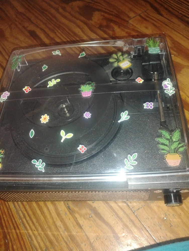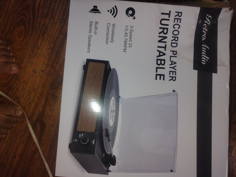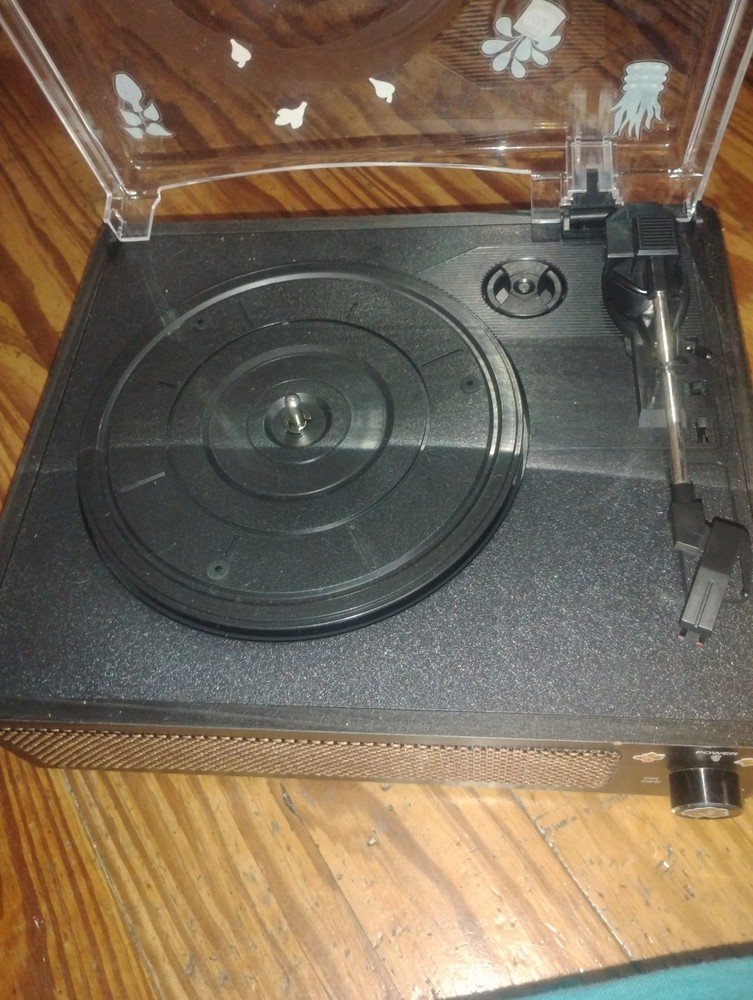 This Bluetooth Turntable Vinyl Record Player with Speakers is a vintage-style media player that offers 3 speeds for vinyl records (45RPM, 33.3RPM, and 78RPM). It features built-in stereo speakers and Bluetooth connectivity for wireless streaming. This black plastic turntable also includes a headphone jack, stereo RCA outputs, and an AUX input for added versatility. With a compact size of 12.8 x 10.83 x 4.72 inches and weighing 5.35 pounds, this retro-inspired record player is a stylish and functional addition to any home audio setup. Has been used a few times but works perfectly basically brand new
