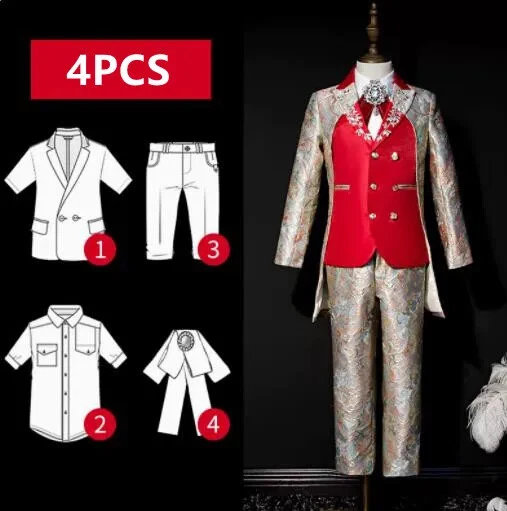 Country/Region of Manufacture: China Style: Tuxedo Jacket Lapel Style: Notch Type: Blazer Material: Polyester Department Name: Children Model Number: A2161 Set Includes: Jacket, Pants, Shirts, bow tie Occasion: Party Sleeve Length(cm): Full Number of Pieces: 4 Piece Jacket Front Button Style: Six-Button Size: 90-160 Pattern: Floral Vintage: No Outerwear Type: coat Lining Material: Polyester Season: Fall, Spring Closure Type: Double Breasted Sleeve Length: Long Sleeve Theme: Birthday, Catwalk, Wedding, party, perform Item Type: sets Fabric Type: Blended Fabric Department: Boys Sleeve Style: regular Garment Care: Hand Wash Only Collar: Turn-down Collar Brand: Party Pattern Type: Patchwork Gender: Boys Fit: Regular Features: Beaded Jacket Cut: Double-Breasted Jacket/Coat Length: Regular Handmade: Yes