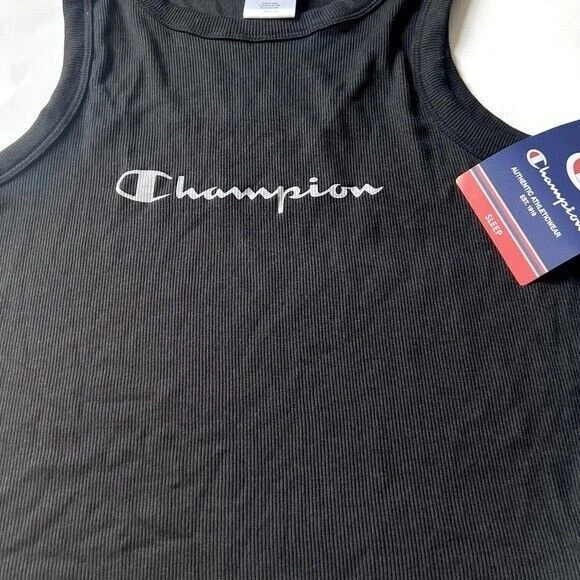 Product Details There are comfy nights ahead in this classic sleeveless pajama muscle tank top from Champion. Length: Hits at high hip Special Features: Logo print at chest Neckline: Crewneck Closure: Pullover styling Sleeve Length: Sleeveless Polyester/viscose/spandex Machine washable Imported Web Listing and template services provided by inkFrog