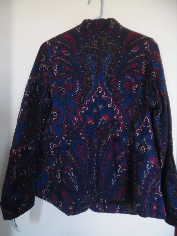New Charter Club 1X woman plus blazer jacket multi color paisley print Armpit-armpit: 24" Sleeve Length 24" Length: 26" AT Combined Shipment: USA : Highest item shipping cost + $3.00. for each subsequent item.Or, you can purchase as many items as you choose and pay the flat rate of $18.75 for your Priority Mail Large Flat Rate Box which covers your entire order. Please read the disclaimer below. INTERNATIONAL SHIPMENTS: Highest item shipping cost + $5. for each subsequent item. Please read the disclaimer below. DISCLAIMER on Shipping Costs: Our intention is to keep our shipping costs as low as possible. However, depending on the item purchased (weight) and the destination, shipping rates can vary; especially 30 Day?s No Questions Asked Returns Policy: Your satisfaction is very important to us. We have a 30 days NO QUESTIONS ASKED returns policy. The item must be returned in the condition in which it was purchased. If there are labels/tags they should not be removed. If they are, the item will be sent back to you. ANY SHIPPING COSTS WILL NOT BE REFUNDED. BOTH WAYS, receiving and any returns. Please contact us for the return shipping address and authorization. ALL COMMUNICATIONS MUST BE IN WRITING & TAKE PLACE THROUGH THE EBAY SITE ONLY. No private direct email correspondence. A customer care rep. will respond to you within 24 hrs (Mon-Fri). Once we have received the merchandise and inspected it, please allow 72 hours for a refund to be issued. NO See my other listings for more great items! We accept PAYPAL. Also we have a virtual terminal with PayPal through which we can accept Visa, MasterCard, Amex, and Discover. If you do not have a PayPal account, it takes virtually minutes to open International shipments: PLEASE DO NOT PAY until we determine your shipping costs. Most of our items also have an International Flat-Rate. Although, if due to the destination or the weight we are unable to honor the rate mentioned in the item?s listing, we will cancel your order and leave you positive feedback. Usually we use the US Postal Service. The best international rate for an international shipment is First Class (up to 4 lbs.)If your items exceed 4 lbs. we may pack them into two separate packages (and notify you of this).You still are eligible to take advantage of the combined shipping rates, even if we have packed them into two separate packages. The fees for packaging, shipping, insurance, Customs Duty Charges on international shipments are all the responsibility of the Buyer and are not included in the purchase price. If the item(s) are gifts, we could indicate ?GIFT? on the customs form so you would avoid paying more on duty. Add a map to your own listings. FREE Trial!
