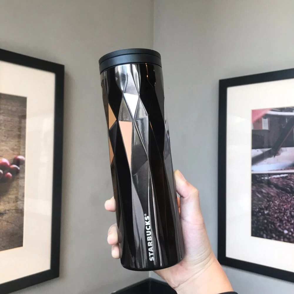 New China Starbucks 16 oz Classic Black Gold Prism Facet SS Vacuum Cup GF Gift Material:Stainless Steel Capacity:285ml(10oz)