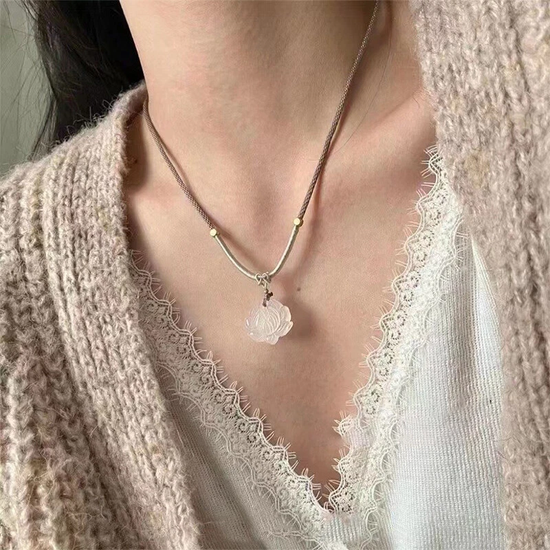 New and high quality! Description: 1. Unique design style: this necklace adopts the design style of new Chinese style and skillfully integrates the elements of Lotus and chalcedony. It is unique and full of artistic feeling, bringing profound visual impact to people and making you stand out from the crowd. 2. Exquisite handicraft: each piece of Lotus chalcedony is elaborately carved and polished to ensure its perfect shape and crystal-clear color, making the whole necklace excellent in both touch and visual feeling. 3. High quality materials: We choose high-quality imitation chalcedony as the main material, with moderate hardness and firm texture, which can completely meet your daily wearing needs. At the same time, it can resist daily friction well and ensure the durability of the necklace. 4. The diversity of accessories: the color and design of this necklace are very universal, and it can be matched with various styles of clothing. Whether you wear it everyday or participate in various formal occasions, it can add a unique charm to you. 5. Perfect choice of gifts: This new Chinese style imitation chalcedony Lotus necklace is a shining surprise whether it is for relatives, friends or lovers. It is not only a gift, but also an expression of deep meaning and love. Material: Chalcedony Color: As shown Package includes: 1PC Note: As different computers display different colors, thank you for your understanding, the actual product color may be slightly different from the image.