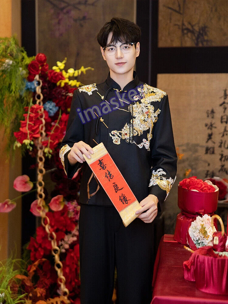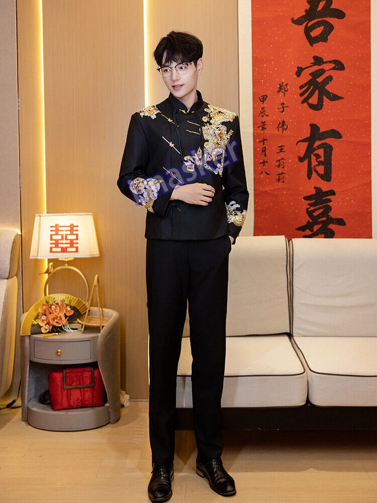 New Chinese Style Mens Zhongshan Suit Wedding Groom's Formal Dress Jacket Pants Set Include : 1x Men Jacket Pant Color:Black Material:Polyester Size: XS-L Friendly Tips: The size is measured by hands, please allow minor error of measurement. Photo color might be a little different from the actual product due to color display of different monitors. Payment 1. We accept PAYPAL only. 2. Payment must be made within 7 days of auction closing (Unpaid dispute will automatically open when item is not paid in 7 days). 3. PLEASE NOTE: SHIPPING&HANDING DOES NOT INCLUDE DUTIES, LOCATL TAXES OR ANY OTHER IMPORTATION FEES. 4. Please list your special requests (color, packages, value of declaration, etc.) in the EBAY NOTES SECTION when you make payment Shipping 1. We Ship to Worldwide 2. We ship your orders within 1-2 business days after the payment cleared. 3. Item shipped from China via china Post Airmail, reach most of the countries within 2 to 4 weeks. 4. Delivery time depends on destination and other factors, it may takes up to 20 days. If you don't receive the item after 25 days,please contact us, we'll investigate and solve the delivery problem. 5. Import duties, taxes, and charges are not included in the item price or shipping cost. These charges are the buyer's responsibility. Please check with your country's customs office to determine what these additional costs will be prior to bidding or buying. Warranty Return 1. Customer satisfaction is our top goal. All products are quality checked. They are new and in good condition when shipped to our customers. If product is defective or damage upon arrival, or wrong product shipped, please contact us immediately. Returns accepted within 14 days of delivery date and item must be in original new condition, not worn or altered in any way with attached tags & wrap. Otherwise deal is final. Return shipping must be paid by buyer. 2. Please contact us first if you have anyproblems/questions/concerns. We will be happy to resolve any issues you may have in a cordial and friendly manner. 3. We appreciate your Positive Feedback, and will do the same in return. PLEASE DO NOT leave negative feedback without first communication with us. Please allow max 24 HOURS for us to respond About Feedback We maintain high standards of excellence and strive for 100% customer satisfaction! Feedback is very important to us. We request that you contact us immediately BEFORE you give us neutral or negative feedback, so that we can satisfactorily address your concerns.It is impossible to address issues if we do not know about them! Contact Us We care about our valued customers, if you have any questions, please feel free to contact us in EBAY MESSAGE, our Customer Service staffs will be very pleasure to reply you in 24 Hours.