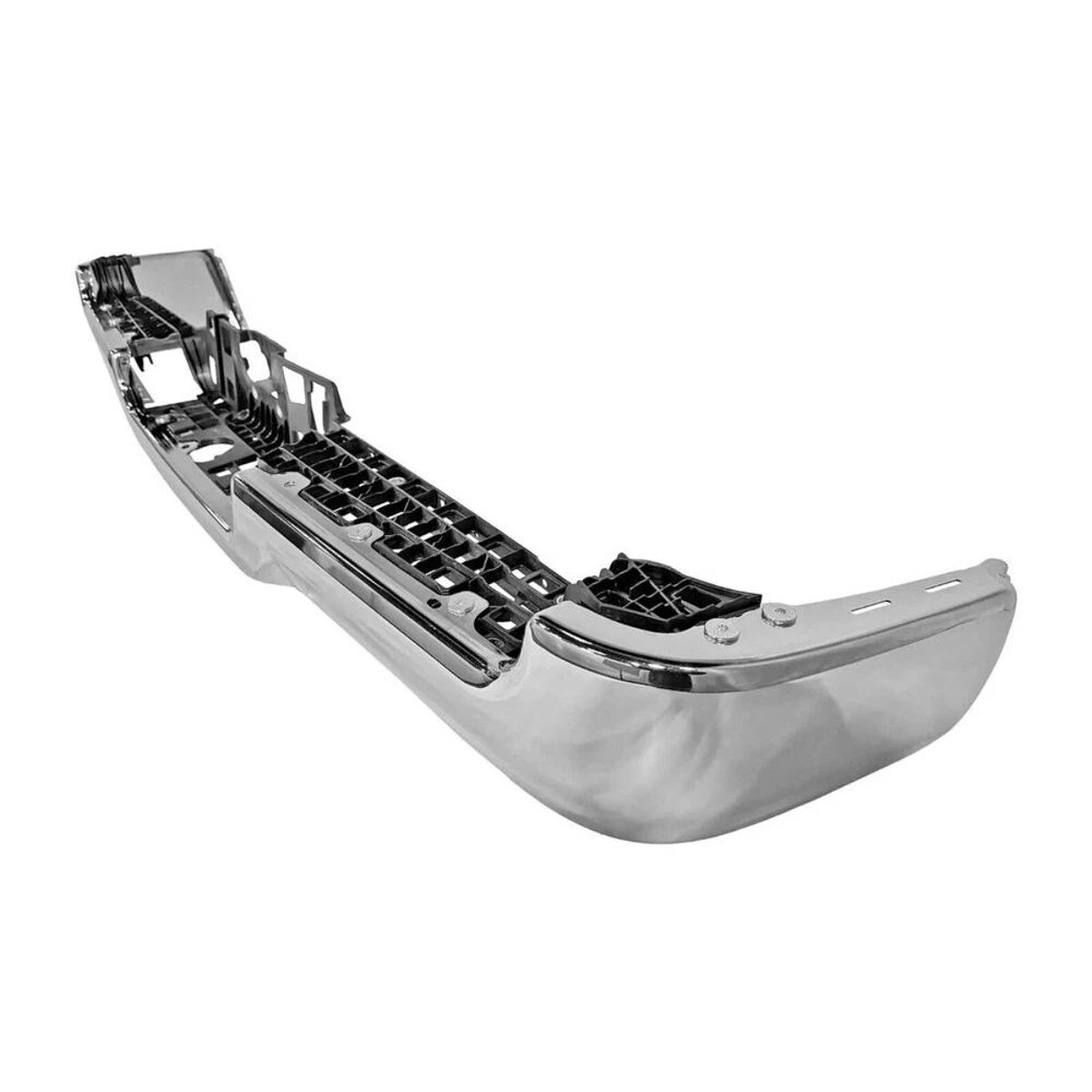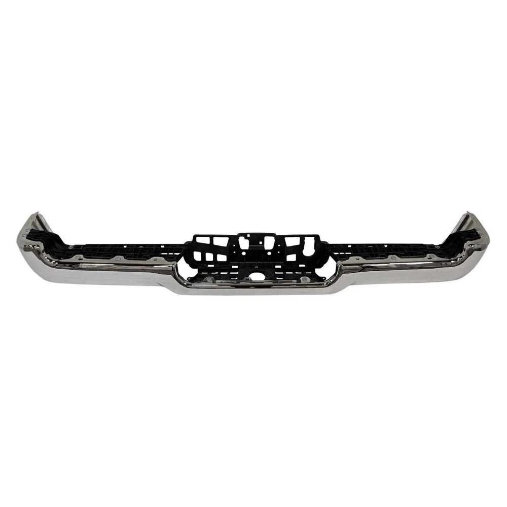 NEW REAR STEP BUMPER FOR RAM 1500 PICKUP 2019-2024 RAM 1500 New Body Style RAM 1500 For Models With Single Exhaust High Polished Chrome Finish Includes Face Bar and Reinforcement Direct OE Replacement