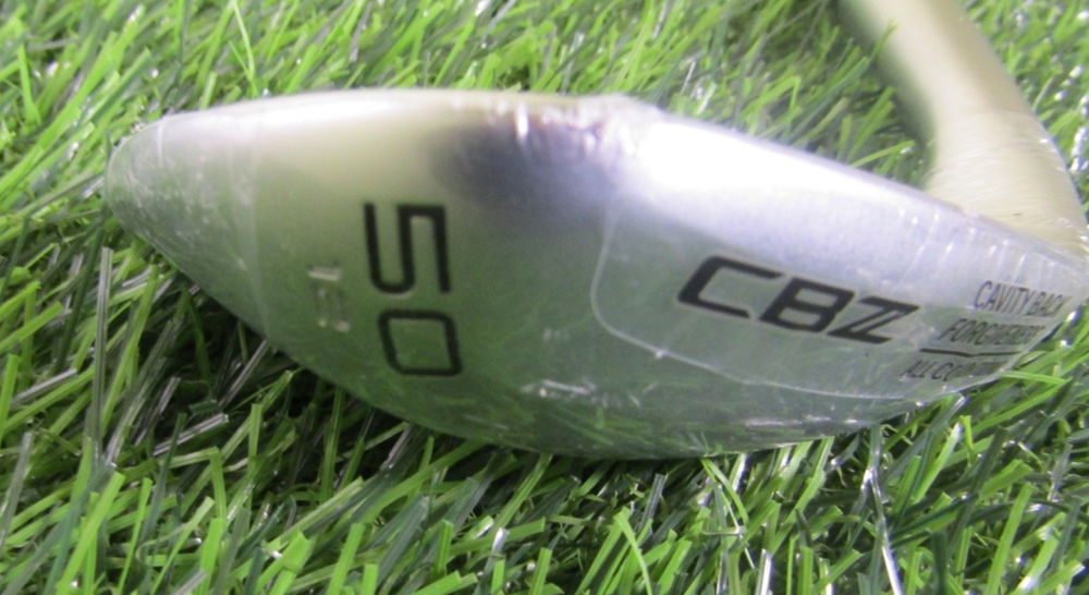 New Right-Handed Cleveland CBZ Tour Satin 50*/12* gap wedge. KBS HI-REV 2.0 115 steel shaft in wedge flex . Standard length, lie, and loft. Stock Golf Pride Tour Velvet standard diameter grip. Head still in plastic! Features: Z-Alloy: A brand-new steel created by Cleveland Golf for a better feel. It’s softer, lighter, and remarkably durable ZipCore: This low-density core technology replaces heavier material in the heel and hosel area with a lightweight material. This proprietary core allows us to shift the Center of Gravity closer to where you strike the ball, while simultaneously adding MOI UltiZip: It's sharper grooves cut through grass and debris at contact, while deeper grooves help make space for grass, sand, dirt, or water to clear the impact zone, giving CBZ Wedges stronger, more consistent spin from the fairway, rough, or bunker HydraZip: HydraZip’s face blasts and laser-milled lines maximize spin in wet conditions