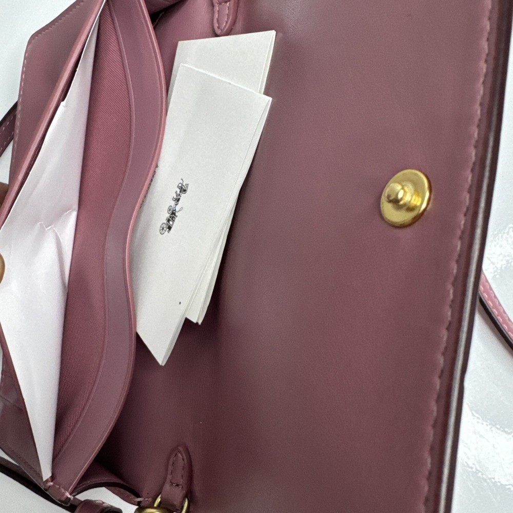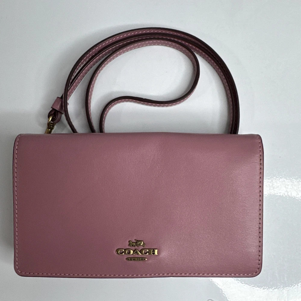 This Coach crossbody is a chic and practical accessory! The smooth rose pink leather with gold brass accents gives it a luxurious yet versatile look. It fits essentials perfectly, and the adjustable strap makes it comfortable to wear. The snap closure keeps everything secure, and the quality is outstanding—definitely worth the investment for everyday style!