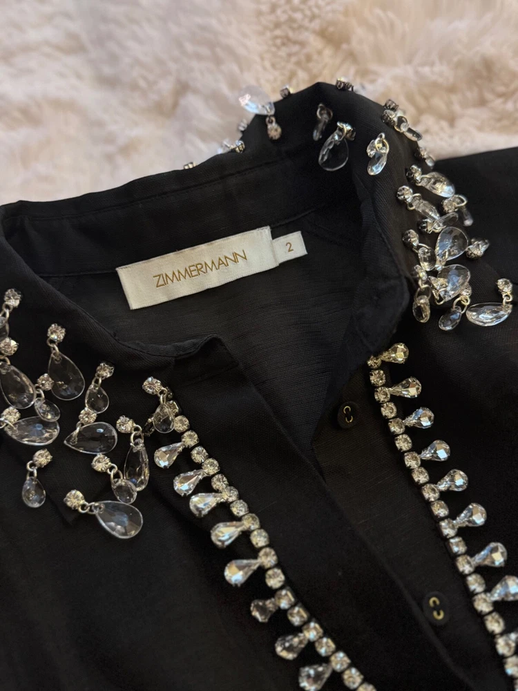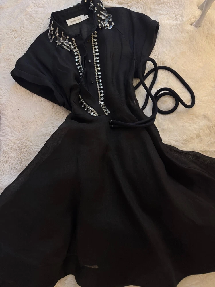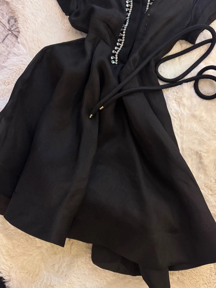 Experience the perfect blend of style and comfort with this elegant ZIMMERMANN dress. Designed for the modern woman, the dress features a timeless solid black color, complemented by short sleeves and a playful mini length, making it an ideal choice for both daytime and evening events. Crafted to fit a size L, this dress embraces a regular size type, ensuring a flattering fit for a variety of body shapes. The simple yet chic style of this garment underscores the sophistication that ZIMMERMANN is renowned for, making it a versatile addition to any wardrobe.