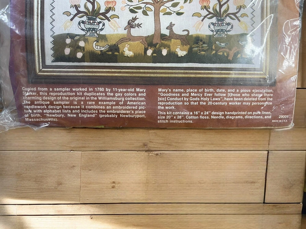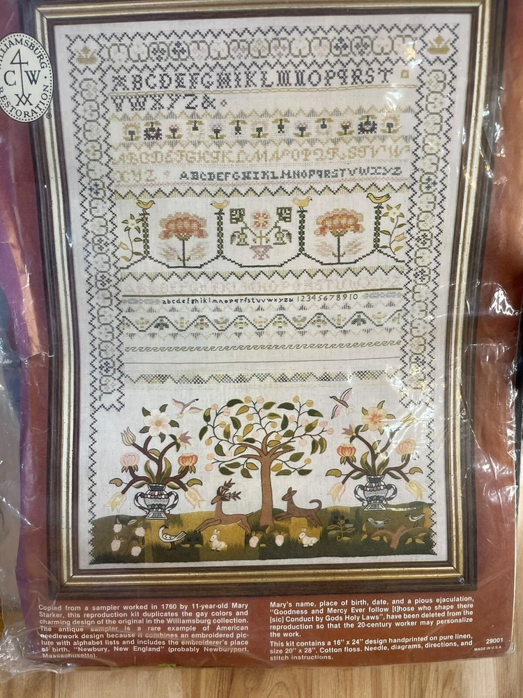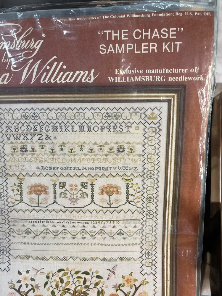 Immerse yourself in the rich history of Colonial Williamsburg with this Elsa Williams cross stitch kit. Featuring the iconic "The Chase" scene, this framed picture kit is perfect for any antique and history enthusiast. The kit includes a pattern, needle, stitching guide, fabric/cloth, thread/floss, and everything you need to create a beautiful and unique piece of art. This sampler style kit is designed for cross stitching and is bundled with all the necessary items to make it easy to get started. The kit is model number 29001 and was manufactured in the United States. Add this beautiful piece to your collection or give it as a gift to someone special.