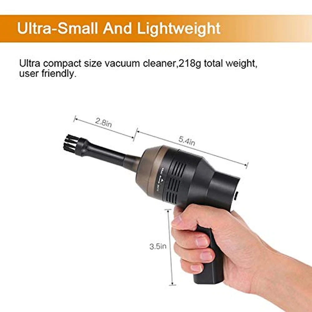 New Cordless Mini Vacuum Cleaner,Portable Computer Vacuum for Car Laptop Sewing Machine Keyboard Vac USB Desk Crumbs Hairs Dust Cleaners Product Details Brand: 10AGIRL Special Feature: Portable, Vacuums, Cordless, HEPA Filtration Filter Type: Cartridge Included Components: Nozzle, Crevice tool, Brush Is Cordless?: Yes Brand: 10AGIRL Special Feature: Portable, Vacuums, Cordless, HEPA Filtration Filter Type: Cartridge Included Components: Nozzle, Crevice tool, Brush Is Cordless?: Yes Runtime: 1 hour and 10 minutes Charging Time: 4 Hours Maximum Suction: 22.5 Millimeters Recommended Uses For Product: desk vacuum Form Factor: Handheld Color: Black Hand Vacuum Model Name: FX-0718 Product Dimensions: 6.1"L x 6.1"W x 2.6"H Battery Description: Lithium-Ion Noise Level: 50 dB Manufacturer: FeiXiaoKeJi Number of Items: 1 Controller Type: Push Button Control Method: Touch Style: handheld Connectivity Technology: USB Portable: Yes Number of Power Levels: 1 Indoor/Outdoor Usage: Indoor UPC: 782855798102 Item Weight: 9.9 ounces Item model number: FX-0718 Batteries required: No Battery type: Lithium-Ion Worried about not being able to clean the keyboard gap?Our portable handheld vacuum cleaner have excellent seal so they convert more air into suction for optimum cleaning are capable of sucking all sorts of tiny trash so that you can use it to clean sofas, desks, window slits, computer,keyboard and your electronical machaine. Rechargeable Vacuum Mini desk vacuum built-in 2000mAh lithium battery, can work about 30 minutes continuous after full charged. 2 Vacuum Nozzles]Different types of vacuum nozzles can help you clean hard to reach areas; Flat nozzle can inhale little pieces of paper while brush nozzle can dry ash and dust. Smaller size, Stronger suctionOur portable handheld vacuum cleaner with a rated power of 18W and a super strong suction force of 3000Pa, making it easier and easier to clean hair, food residue, dust, and animal hair.You dont have to use the large upright vacuum cleaners to clean up the dirty place. Reusable & Washable FilterComes with 2 filter , You can disassemble the filter and clean it with water and mild detergent after being used for a long time.The USB mini vacuum adopts dust container design and its filter meets High Efficiency Particulate Air (HEPA) standard.