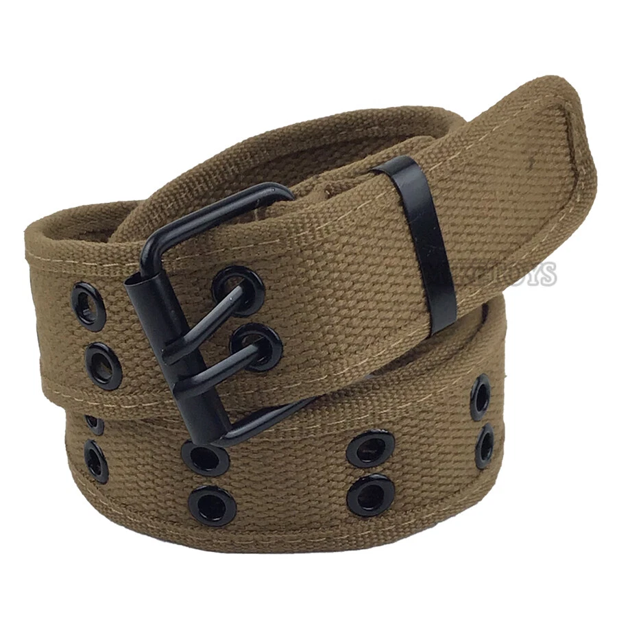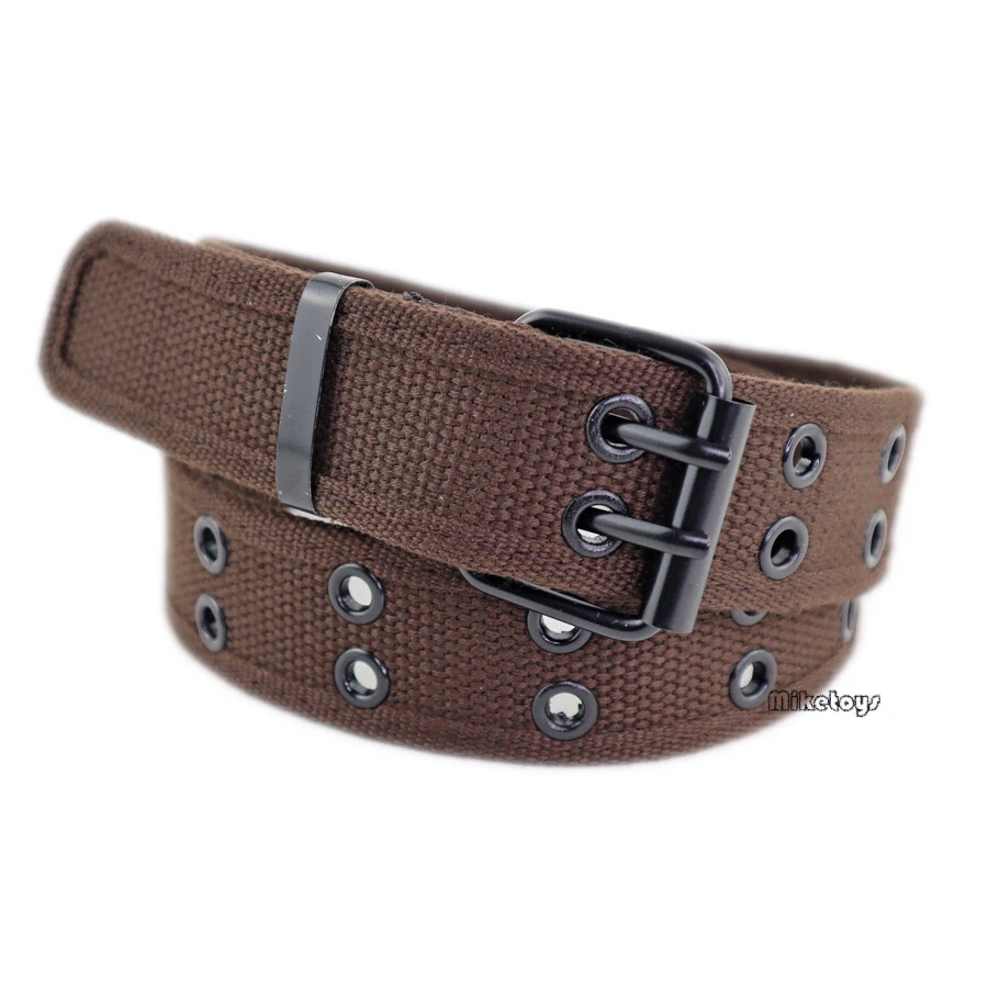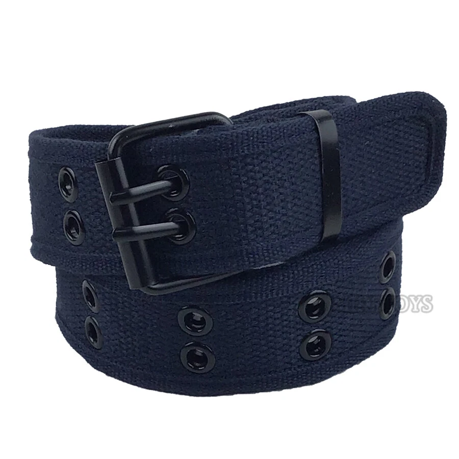 New Cotton Canvas Double Grommet Hole Buckle Belt Men Women Causal Jeans