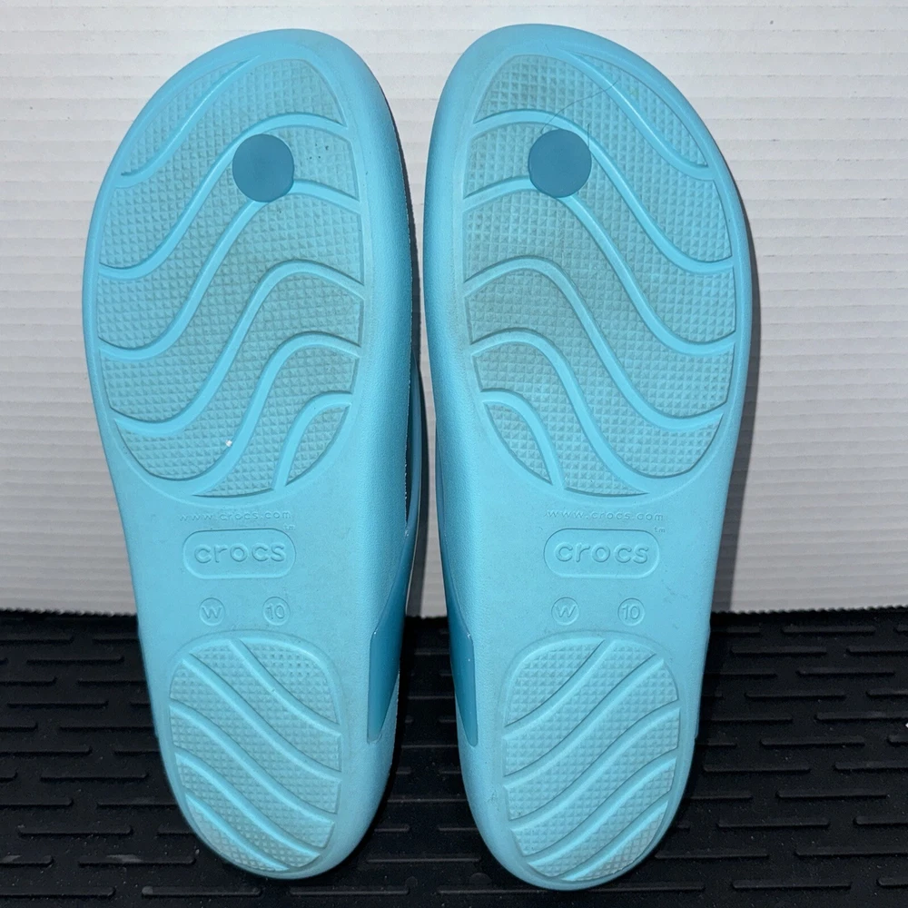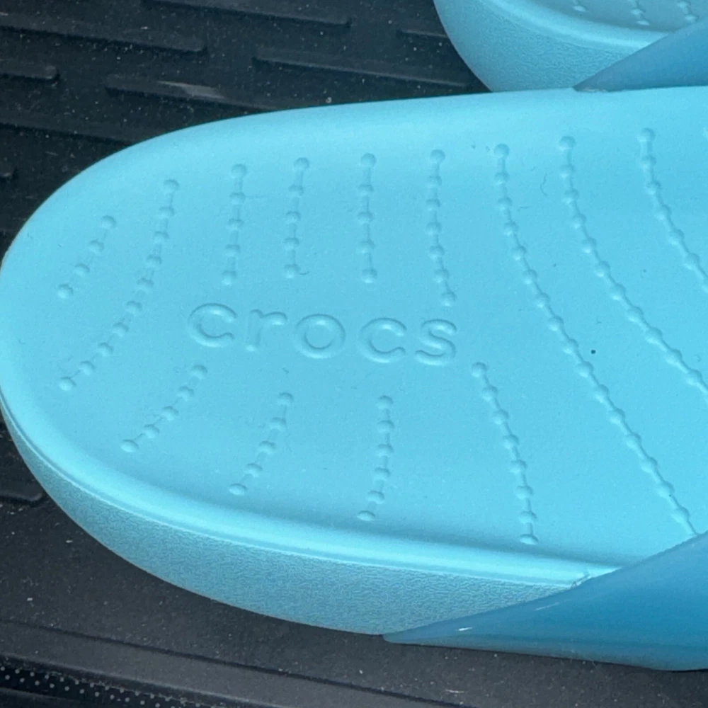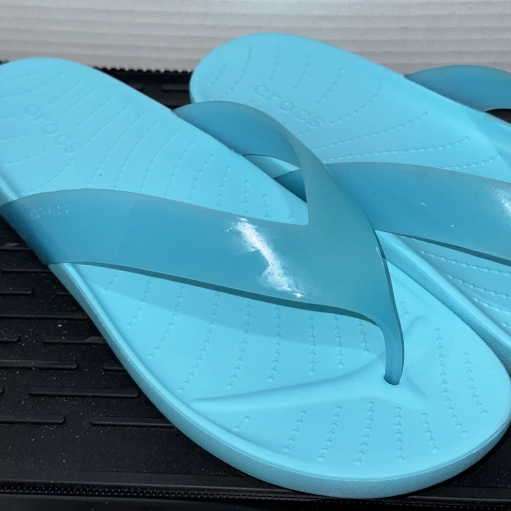 Elevate your summer style with these trendy Crocs thong sandals in a stunning blue jelly color. Perfect for women who love to make a statement, these slides are designed with synthetic upper material that ensures durability and comfort. The thong style and slide design make them easy to wear and take off, making them ideal for everyday use. These Crocs sandals are perfect for any occasion, whether you're running errands or heading to the beach. With a US shoe size of 10, they are designed to fit comfortably. The brand, department, type, model, and style are all listed in the aspects section. Get ready to rock these stylish slides and add a pop of color to your wardrobe.