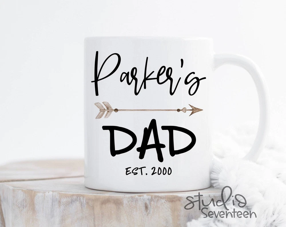 New Dad Mug Personalized Dad Mug Baby Reveal Mug First Time Dad Gift Fathers Day Product Details.. This high quality 11oz. ceramic white mug has a premium hard coat that provides crisp and vibrant color reproduction sure to last for years. Perfect for all hot & cold beverages. The highest quality printing possible is used. It will never fade no matter how many times you wash it. Material: 100% Ceramic. Print both sides. Dishwasher and Microwave Safe. High Gloss + Premium White Finish. Printed in the U.S.A. Personalized & Custom. We support personalized and custom mug to add custom, when placing an order, you can add notes to the "order note" in shipping address section. Also you can contact us directly via message. Shipping Info. Ready to ship in 1 to 2 business days, All products are made-to-order and proudly printed in the United States. Shipped by USPS and DHL, You will receive your order in 5-7 days. Replace & Refund. All products are defective during shipping broken, chipped will be replaced free of charge. You are not satisfied with the product, we will refund 100% money to you. If any other issues arise, please do not hesitate to message, we would be more than happy to assist you.