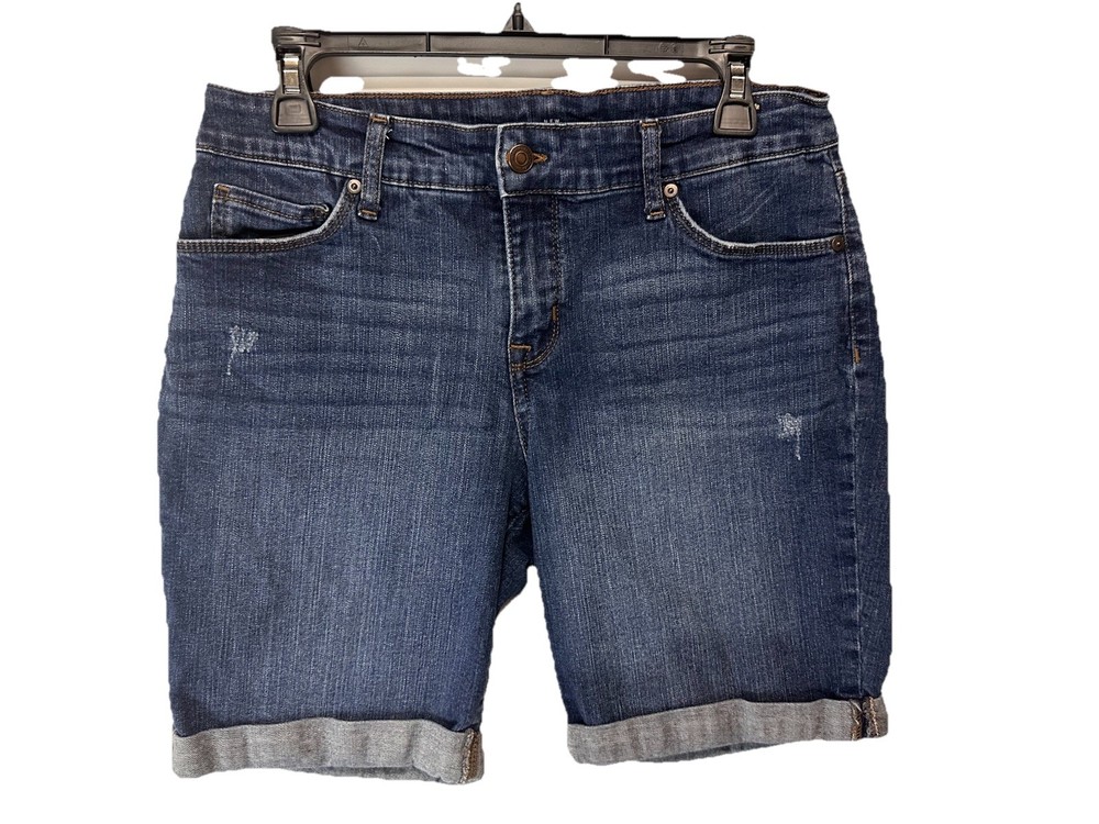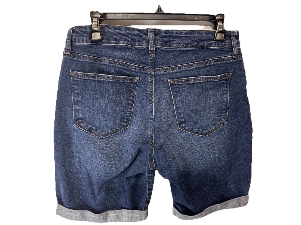 New Directions 8" Denim Shorts 5 Pocket Stretch Dark Wash Size 8