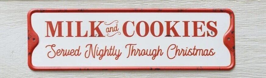 ~ Welcome to 1804 Primitives ~ Milk and Cookies Metal Sign Approx 10.5" wide x 3.25 high Lightly distressed metal sign, perfect for th e Holidays This piece has a screw hole on each end (nails not included) Measures approx 10.5" wide x 3.25 high ~ Thank you for shopping in our little corner of eBay ~