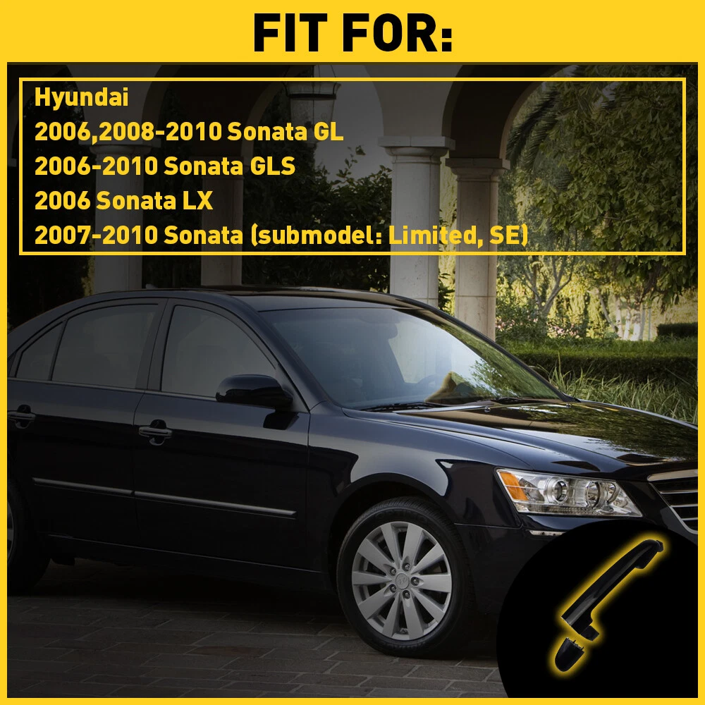Fits for: Hyundai 2006,2008-2010 Sonata GL 2006-2010 Sonata GLS 2006 Sonata LX 2007-2010 Sonata (submodel: Limited, SE) Specifications: OE number: 826513K000 Material: ABS Color:Black Placement on vehicle: Exterior(Rear left/right) Features: *Perfect fit Manufactured according to original one to match with your vehicle perfectly. *Strict Quality Control All of our handles undergo strict quality control not just before shipping but throughout the production process. *Durable New Door Handle Rear Driver & Passenger Side 826513K000 Sedan LH RH for Sonata Fits for: Hyundai 2006,2008-2010 Sonata GL 2006-2010 Sonata GLS 2006 Sonata LX 2007-2010 Sonata (submodel: Limited, SE) Specifications: OE number: 826513K000 Material: ABS Color:Black Placement on vehicle: Exterior(Rear left/right) Features: *Perfect fit Manufactured according to original one to match with your vehicle perfectly. *Strict Quality Control All of our handles undergo strict quality control not just before shipping but throughout the production process. *Durable Mainly made of high-quality plastic material to ensure the durability. Packaging include: Door Handle*1 Item Specifics Brand Unbranded Type Door Handle Color Black Placement on Vehicle Left Right Rear Right Rear Left Rear Exterior Number of Pieces 1 Finish Polished Material Plastic Features Scratch-Resistant Anti-Stain Durable Easy Installation Manufacturer Part Number 826513K000 OE/OEM Part Number 826513K000 Attachment Type Clips Shape Rectangular Vintage Part Yes Performance Part Yes Universal Fitment No Manufacturer Warranty 2 Years Items Included Screws Interchange Part Number For Hyundai 2006,2008-2010 Sonata GL Fits for 1 2006-2010 Sonata GLS Fits for 2 2006 Sonata LX Fits for 3 2007-2010 Sonata (submodel: Limited, SE) Superseded Part Number ABS Door Handle*1 Fits for 3 2007-2010 Sonata (submodel: Limited, SE) Superseded Part Number ABS Door Handle*1 FAQ ♥ If you have a decoding problem or any other problems, please contact us first, we will help you with it. We will reply you within 24 hours in working days. I'm a new seller, thanks a lot for your trust and convince! I will serve you with all my heart. ♥ Q1: Will this bulb fit my vehicle? A: We can match almost any vehicle to one of our bulb sizes. eBay only lets us include some vehicle fitments per listing, but if your vehicle does not show up on the compatibility table at the top of our listings, welcome you to contact us for free consulation before purchasing a product. Q2: My item has not arrived, what's taking so long? A: Sometimes items take longer than expected, especially if it’s going far or to rural area. Check with your post office to see if your item has been held up. Sometimes Royal Mail will not update a tracking number until it has arrived at its destination. If your item still don't arrive after a few days, let us know so we can double check for you and help solve it asap. Q3: My bulbs won't fit, help! A: Special bulb holder may be required. See if you can take the holder from the stock bulb. If not, let us know. The bulb size may be wrong, double check the item you received with the item you ordered. Do you have an aftermarket lighting housing? These may not be perfectly fitted for aftermarket bulbs and will require some manual modifications. Q4: Neither side lighting up? Both sides flicker, hyper flash, or work inconsistantly. A:Check the light fuses, and then check the ballast plugs to insure correct installation. If this doesn't work, there may be a voltage problem with the vehicle. You probably just need a relay or capacitor. Even though some bulbs are builtin resistors, they may still need a decoder. Pay & Ship (1). We gladly accepts payment via PayPal, We will ship your item(s) within 24 hours. (2). Before payment, please keep the consistency of Paypal address and ebay address. (3). Quantity orders are welcome! Returns (1). We offer 60 days free return policy. Please contact us within 60 days from the date you receive your order if you have any issues with the product or want return. Refund will be send after we got your resend package. (2). All returned items should be in the original packaging , return tracking information should be provided . Contact Us (1).Negative feedback will not help resolve any problems you have, please contact us via eBay messages before leaving negative feedback , our customer service will make best effort to help you with the issues. (2).We maintain high standards of excellenceand strive for 100% customer satisfaction! Feedback is very important to us. We request that you contact us immediately before you give us neutral or negative feedback, so that we can satisfactorily address your concerns. About us We're professional in car and motorcycle accessories, especially in LED bulbs. We have our own factory and R&D team. Our belief is to sell top quality items that fit your car and serve you with our heart. Anything please feel free to contact us! Our customer service is very responsibility. Come and follow us! DESCRIPTION NEW ARRIVED HOT SALE CONTACT US SAVE US Store Category Store Home Other Hot Item Front Left Front Handle Door Driver Side for 80645-CA000 2010-2013 Nissan Rogue USD 13.29 Rear/Front Passenger/Driver Side Exterior Door Handle For Chevrolet Silverado USD 13.99 Front Left Door Handle Front Driver Side 80645-CA000 for 2010-2013 Nissan Rogue USD 17.99 Interior Door Handle Front Right Left Passenger for 1998-03 Toyota Sienna Inside USD 9.99 Door Handle For 1998-2003 Toyota Sienna Van Outside Front Left Driver Side Black USD 14.99 New List Item 2X Door Handle Front Driver Passenger Side L &R For 2000-2005 Mitsubishi Eclipse USD 18.99 4X Front Rear Left Right Black Exterior Door Handle For 2003-2006 Kia Sorento LX USD 47.99 Door Handle For 2000-2007 Ford Focus Front Left or Right Outer Smooth Black USA USD 13.49 Front Left Driver Outside Door Handle for Toyota 1997-2001 Camry Beige USD 14.99 Exterior Door Handle 4X Left+Right Full Set For 2011-2016 