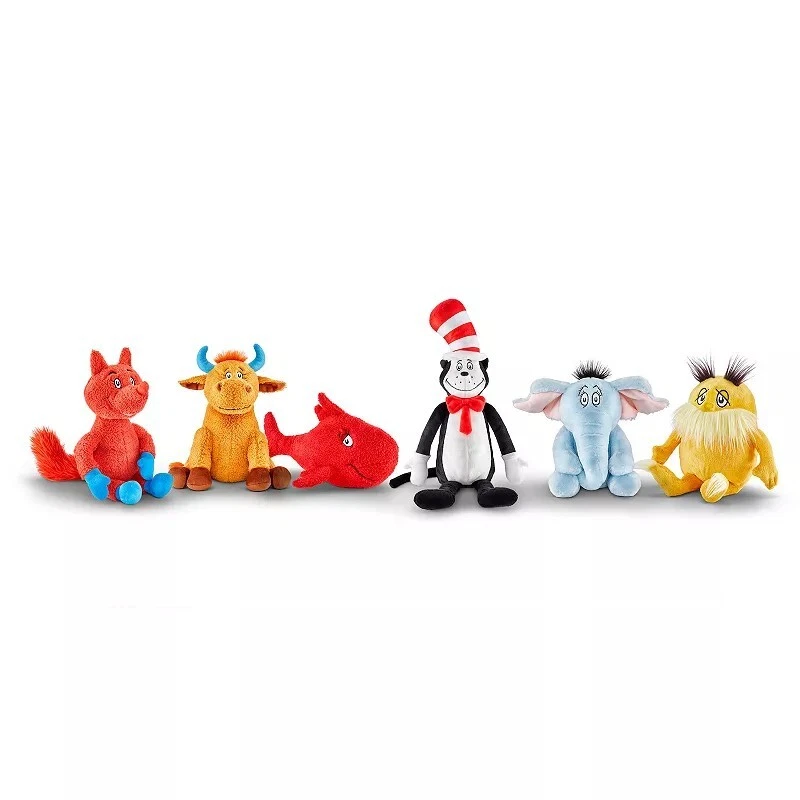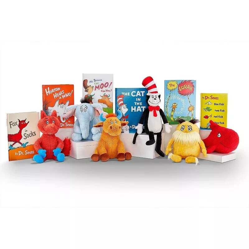 Get ready to delight with this classic Dr. Seuss THE CAT IN THE HAT 14" plush/book set. The set includes a soft and cuddly plush cat and a the classic original cat in the hat book. The set is part of the Dr. Seuss character family and is sure to be a hit with readers and collectors alike. Don't miss out on this amazing plush and book set!