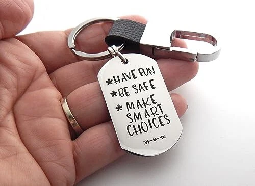 Return Policy Fast Delivery Trusted seller New Driver Have Fun Drive Safe Keychain Teenage Driver Keychain Sweet 16 Daughter Son Graduation Key Ring Gifts 16th Birthday Product Description Have Fun Drive Safe Make Smart Choices - Perfect gift for any College Student or Military Member Graduation Gifts, High school graduation gift, Duaghter or Son Gift, Driver's licese gift, Christmas and Birthday Gift. 16th Birthday Gifts Shipping Returns Payment Shipping Shipping is FREE to all addresses other than APO/PO boxes in the lower 48 states. All our stock ships from US-based warehouses. Shipped via USPS or UPS (depending on location and package weight) Unless stated otherwise, all orders will ship within 24-72 hours of your payment being processed. Check our feedback to see the great reviews of FAST shipping we offer. Returns Seller does not accept returns Payment We currently accept payment via eBay managed payments only. Once payment is cleared, we will dispatch your shipment within 1-3 business days. Please refer to the "Shipping" tab for more information regarding shipping speed to your destination.