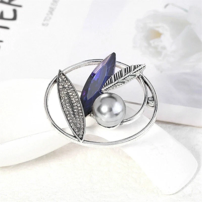 New Dumb Silver Color Flower Leaf Pearl Brooch Creative Clothing Corsage Jewelry