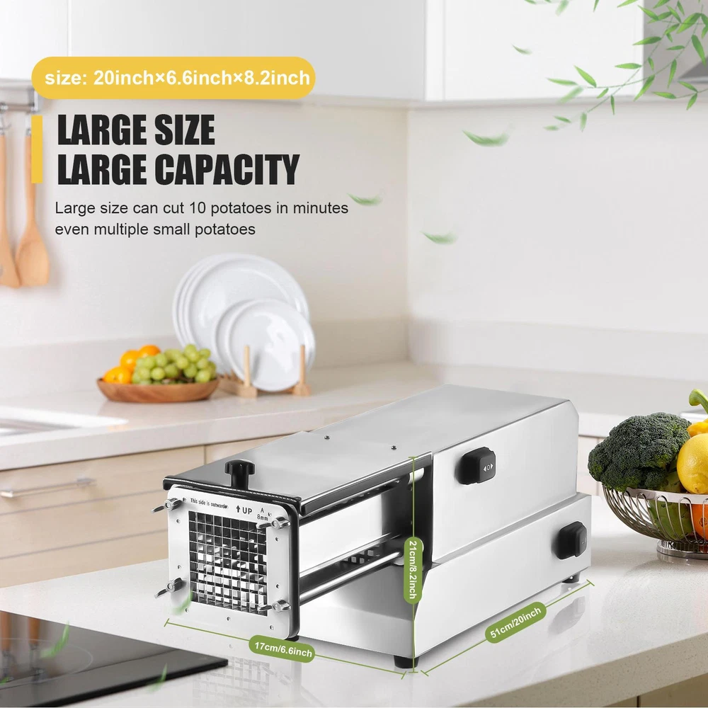 Store category Sign Up Now ! You may also like Product Description Bullet Points: Large Storage Room: With a large capacity, our electric French fry cutter is suitable for both commercial and home use. It helps you quickly cut potatoes into French fry shapes, saving time and effort. Say goodbye to tedious cutting and slicing and hello to perfectly shaped fries. Last for a Long Time: Manufactured with thick stainless steel, this Electric French Fry Cutter boasts good durability against deformation and rust. Its stainless steel shell ensures long-lasting use, making it a good and robust addition to your kitchen. Widely Applicable: Using 4 stainless steel interchangeable cutters, this Electric French Fry Cutter creates versatile 1/2", 1/3", 3/8", or wedge-shaped strips/cubes. Each cutter is replaceable and delivers extended service life, perfect for slicing potatoes and more. Easy to Use: Have crispy fries in no time with our Electric French Fry Cutter. Simply open the lid, load ingredients and press start. Easily push out fries with 1 button. Safe Usage: The electric French Fry Cutter is equipped with a secure lid made of rust-proof stainless steel. The machine is designed not to operate unless the lid is properly in place, ensuring maximum safety. Effortlessly cut a large capacity of thick fries with the Electric French Fry Cutter. The included lid ensures safety while easily pushing out fries to meet your different needs. Specification: Product size: about 6.3x8.1x19 inches/16x20.57x48.26cm Material: Stainless steel Recommended use: Vegetables Product care instructions: Hand wash only Cutter material: Stainless steel Cutter shape: Rectangular Using mode: Automatic Color: black, silver Packing List: 1* Electric Potato Machine 4* Cutters Payment Delivery details Terms of sales About us Feedback & DSRs Payment Before you palce an order, please kindly make sure that you have a paypal account. We accept PAYPAL payment only. Payment should be completed within 2 days after auction closed, or unpaid dispute will be filed for an closing auction. An unpaid case will be filled after 4 days. Delivery details We ship to your eBay address. Each package will be shipped to US by UPS Regular Parcel with tracking number. Please check your shipping address carefully before checkout, it can't be changed if order completed. All items will be shipped within 1-2 business day upon receipt of payment.Orders placed on weekend will be shipped within 3 days. If you do not receive your item in 7-10 business days.please contact us immediately for further assistance. We will be responsible for any damages or losses incurred in the shipping process. About us We maintain high standards of excellence FIVE STAR and strive for 100% customer satisfaction! Positive Feedback is very important to us. We hope that you contact us immediately Before you give us neutral or negative feedback, so that we can satisfactorily address your concerns. We promise to offer the lowest price and high quality produce. Our working time: From Monday to Friday(9:30 am to 18:00pm), we don't working on holidays ,hope you can understand and know that , thank you. Please always talk to us via ebay Message. We appreciate your business and look forward to growing our e-Bay sales with satisfied customers. Feedback Contact us If you have any questions, please feel free to contact with us by ebay Message during our business hours ( 9:30a.m. to 5:30 p.m.), or email us through eBay, we will try our best to help you to resolve it. For any presale or after-sale questions,please do feel free to email us! Due to the time difference, each email will be replied within 1 working day,and weekend will be delayed a bit. Feedback