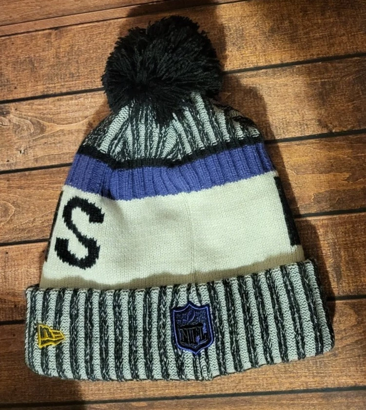 New Era Baltimore Ravens On Field Sport Knit Pom Winter Hat Beanie OSFM New.