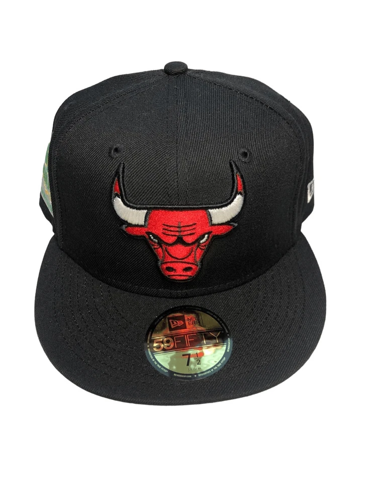 New Era Chicago Bulls Citrus Pop 59FIFTY Hat Cap Size 7 1/2 New with tags Color Black with green underbrim Embroidered 6X NBA Finals Champions on side, Chicago Bulls logo on front, New Era Logo on side and NBA logo on back