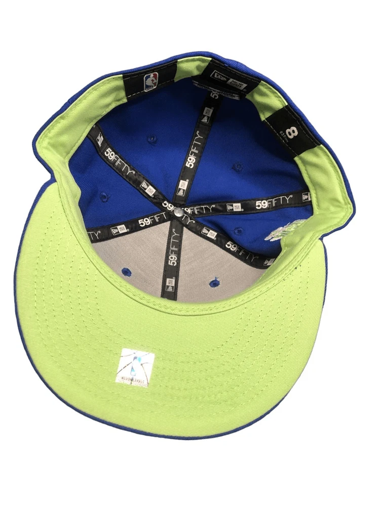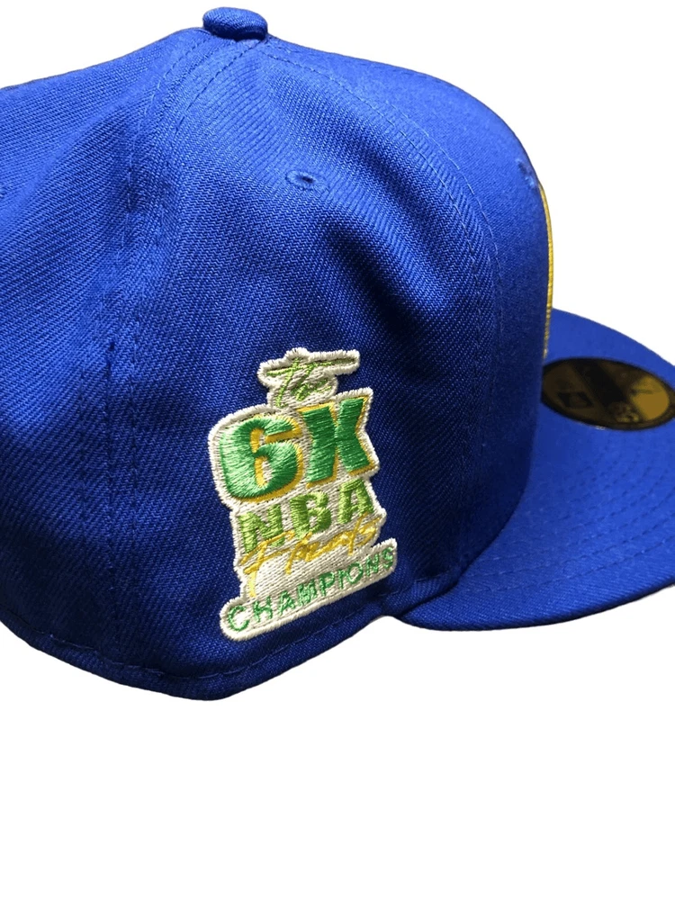 New Era Golden State Warriors Pop Citrus 59FIFTY Hat cap Size 8 - New with tags - Blue/ Gold/ Green - Fitted 8 - Embroidered 6x NBA Finals Champs patch and new era on sides, NBA logo on back, and Golden State Warriors patch on front - 6 Panel construction with embroidered eyelets - Fitted hat - High crown; flat bill - Green brim of hat - Durable polyester blend fabric
