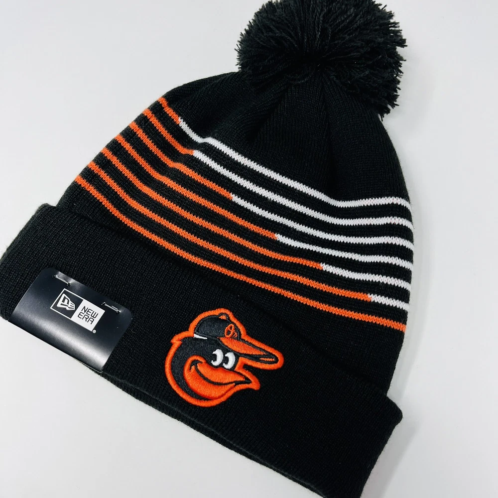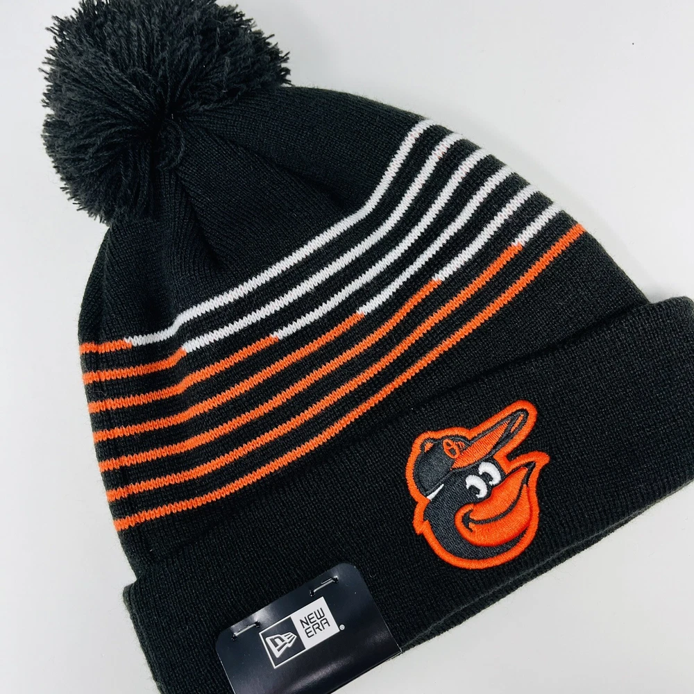 HomeNew Era MLB Baltimore Orioles Mens Beanie Toboggan Winter Hat Cap Cuffed Pom