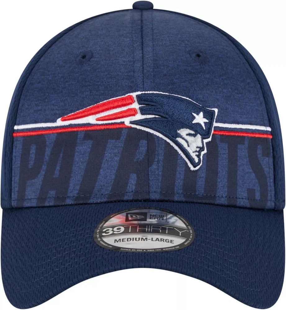 Show your love for the New England Patriots training camp with this New Era stretch fit hat. This baseball cap features a solid blue color with the team's logo on the front. Made from high-quality polyester fabric, it is perfect for travel, casual wear, and work. The hat comes in size M/L with no personalization or signature. It is not a vintage item but features a patriotic theme. The stretchy fabric type and handmade design make it a comfortable and durable choice for summer, fall, and spring. Get yours today and support your favorite team! Retail $38