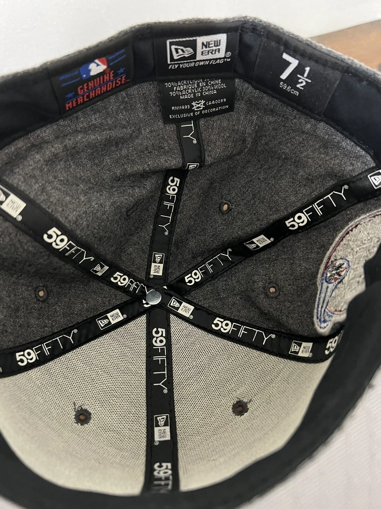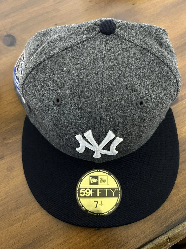 Show your support for the New York Yankees with this authentic two tone, gray 59FIFTY fitted hat by New Era. This gray cap is officially licensed by the MLB and features the iconic Yankees logo. Perfect for any baseball fan, this hat is a must-have for your collection. With a size of 7 1/2, it is sure to fit comfortably. Whether you are at the game or just out and about, this hat will show your team spirit.