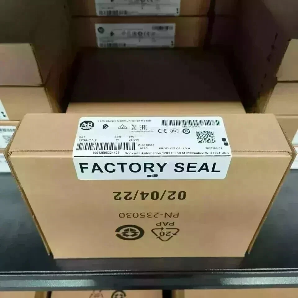 The product is a new factory sealed Allen-Bradley 1756-CN2 SER C ControlLogix Communications Module. It is designed as a PLC input/output module for the ControlLogix controller platform. This module allows for communication within a ControlLogix system and is a crucial component for industrial automation and motion control applications.